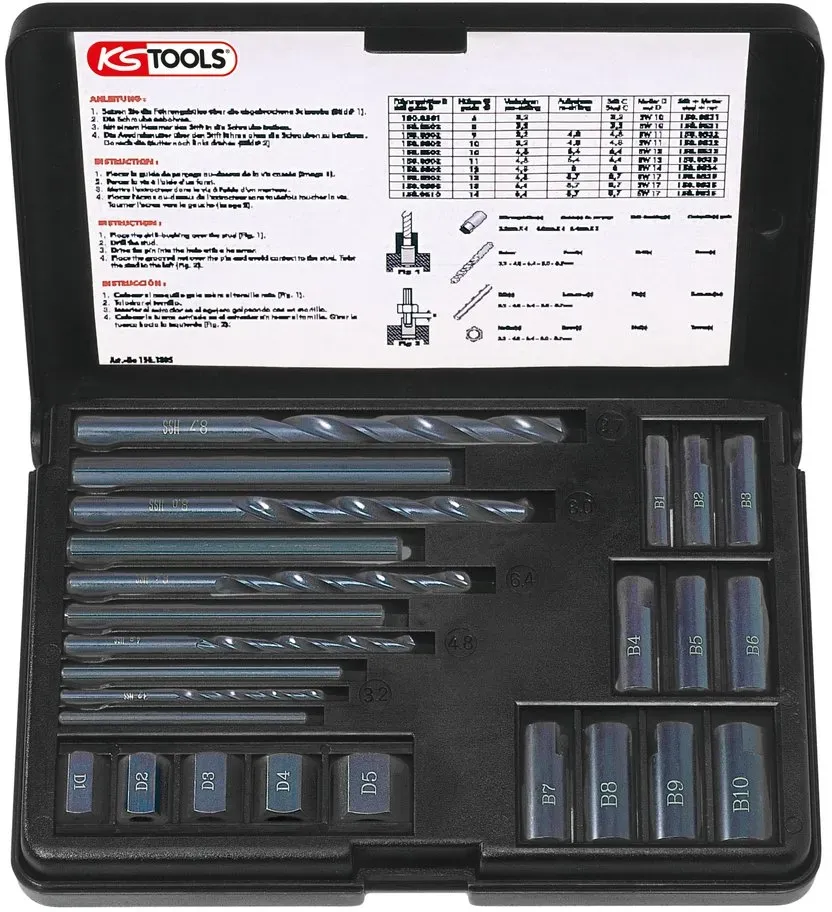 Kategorie: Schneidwerkzeuge - KS Tools - GTIN:4042146020708 - Produit de couleur : Coffret d'extracteurs pour vis et crous, 25 pi ces R f rence du produit : 4042146020708 Poids du produit : 0.650 ref 2 :150.1305 - 50,26 Euro bei Amazon Marketplace CE - gefunden von billiger.de ![]() ![]() Ausdrehwerkzeugsatz Stehbolzen - KS TOOLS eBay 150.1305 Werkzeugstahl