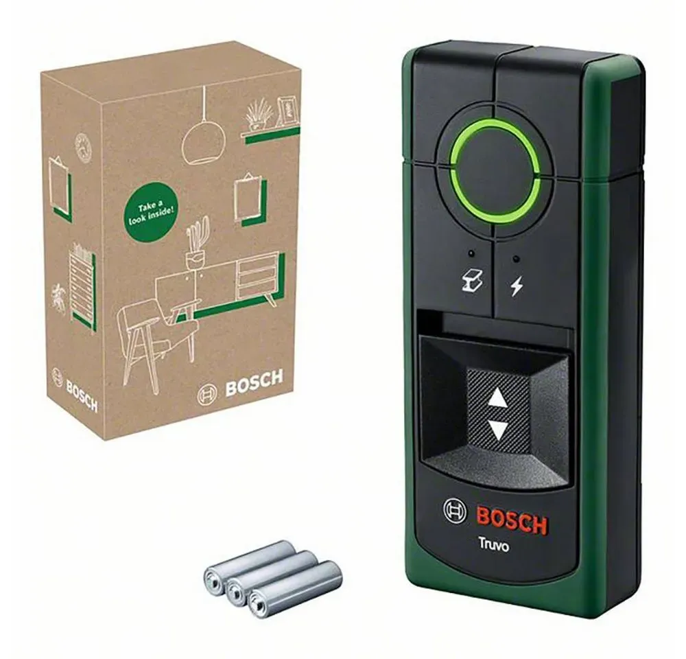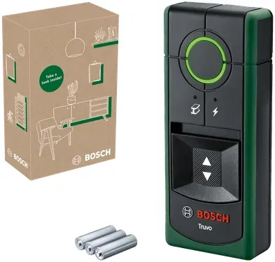 Auf Lager Versand durch AmazonBosch Ortungsgerät Truvo der 2. Generation (einfache Ein-Knopf-Bedienung, einfaches Orten von stromführenden Kabeln und Metallobjekten, Wandscanner bis 70mm, im E-Commerce Karton)