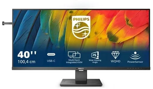 Verfügbarkeit: Auf Lager, sofort versandfertig Lieferzeit 1-2 Werktage - EEK: F - Kategorie: Monitore - Philips - GTIN:8712581797478 - Philips 40B1U5600 UltraWide Monitor 102 cm (40 Zoll) - 478,69 Euro bei Office Partner GmbH - gefunden von billiger.de Dieses Angebot von Office-Partner.de hebt die umfassenden Features wie UWQHD, IPS, 120Hz, USB-Hub und KVM hervor, was es zu einer soliden Wahl macht. ![]() Philips 40B1U5600 UltraWide Monitor 102 cm (40 Zoll) UWQHD, IPS, 4ms, 120Hz, HDMI, DisplayPort, USB-C, USB-Hub, KVM