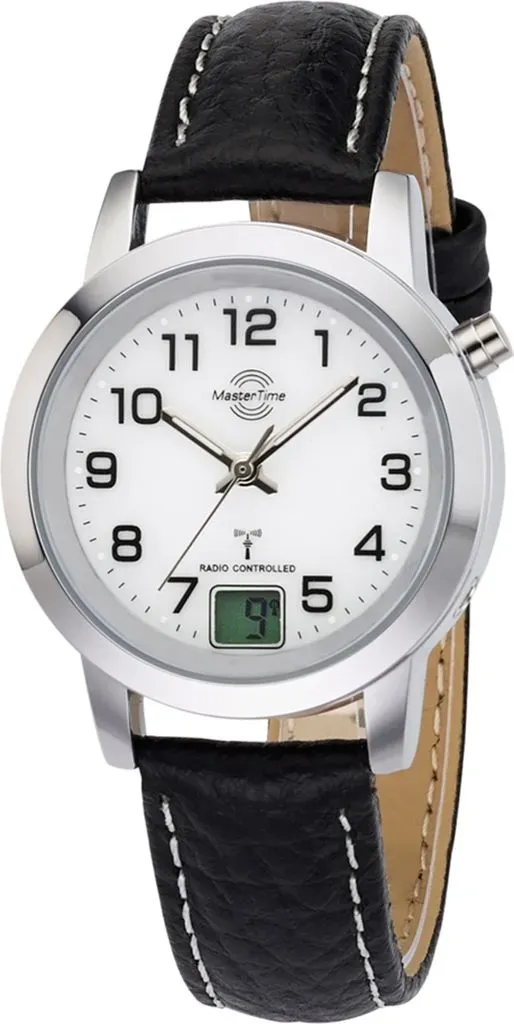 Zustand: Neu - Armbanduhren Armbanduhren für Damen - Master Time - MTLA-10295-12L - EAN: 4260091353874 - Gut ablesbare Funkuhr mit großen arabischen Ziffern, schwarzes Lederband, Wasserdicht bis 3 Bar Funkuhr mit digitaler Datumsanzeige, Ewiger Kalender, Funkgesteuerte automatische Zeitumstellung von Sommer- und Winterzeit, Leuchtzeiger Funkuhr mit Langzeitbatterie, 3x längere Lebensdauer als bei einer herkömmlichen Batterie! Empfang des Signals DCF 77 (Mainflingen, DE) - Verkäufer: Hersteller Eco Tech Time / Master Time im amazon.de Marketplace ![]() ![]() Master Time Funk Quarz Damen Uhr Analog-Digital mit Leder Armband MTLA-10295-12L
