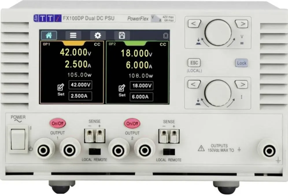 Verfügbarkeit: Auf Lager, Lieferzeit 1-2 Werktage - Kategorie: Netzteile & Ladegeräte - AIM TTI - GTIN:5060584591771 - FLEXIBLE LEISTUNG Das Herzstück der FX-Serie ist die fortschrittliche PowerFlex-Technologie von Aim-TTi. Sie bietet eine intelligente automatische Bereichsanpassung, die den Betriebsbereich innerhalb der 105-W-Kanalleistung dynamisch anpasst. Dies gewährleistet optimale Effizienz und Leistung und ermöglicht es Anwendern, die Leistung präzise an die Anforderungen der Anwendung anzupassen. HOHE EINSTELLAUFLöSUNG Für Anwendungen, die höchste Genauigkeit und Auflösung erfordern, stehen bis zu 5-stellige Einstell- und Messfunktionen für Spannung und Strom zur Verfügung. Die Auflösung beträgt 1 mV/1 mA. KOMPAKTES UND LEICHTES DESIGN Die FX-Modelle wurden speziell für Ihren Arbeitsplatz entwickelt. Ihre kompakte Stellfläche (200 x 140 x 300 mm (B x H x T)) sorgt dafür, dass sie keinen unnötigen Platz auf Ihrer Werkbank oder Ihrem Regal einnehmen. Das Niederdruck-Lüfterkühlsystem hält die Geräte kühl, ohne die Geräuschentwicklung zu erhöhen. UNüBERTROFFENE VIELSEITIGKEIT UND KONTROLLE Die FX-Serie definiert die Benutzerinteraktion mit ihrem intuitiven 4,3-Zoll-Farb-Touchscreen neu und ermöglicht präzise Einstellungen mit nur einem Fingertipp. Für alle, die ein taktiles Erlebnis bevorzugen, bietet die Serie auch eine Live-Einstellung über Drehregler für ein praxisnahes Gefühl. SPANNUNGSNACHFüHRUNG Alle Ausgänge sind vollständig ... ![]() ![]() AIM TTI FX100DP Labornetzgerät, einstellbar 0 - 42 V 1 mA - 6 A 210 W fernsteu, Labornetzgerät