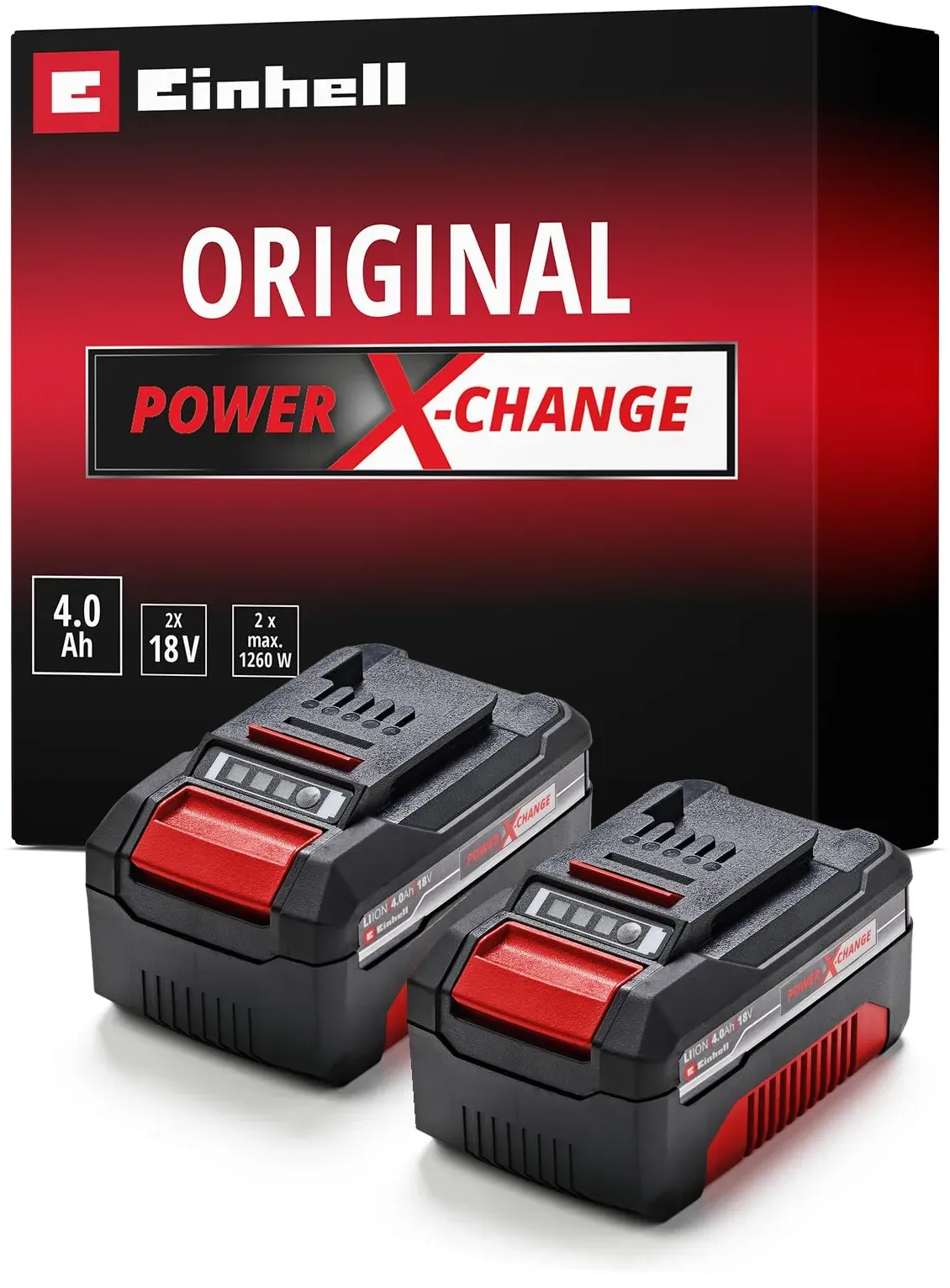Auf Lager Versand durch AmazonOriginal Einhell Akku PXC-Twinpack 4,0 Ah Power X-Change (Li-Ion, 18 V, 2x 4,0 Ah, für alle PXC-Geräte geeignet, proaktives Batteriemanagement, situativ angepasste Ladezyklen)