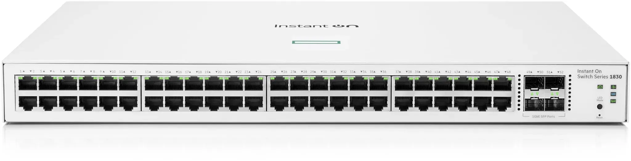 Kategorie: Sonstige Netzwerkartikel - Aruba a Hewlett Packard Enterprise company - VIELSEITIGER SMART-MANAGED SWITCH: Der Instant On 1830 48G 4SFP PoE-Switch ist ein intelligent verwalteter, leicht bereitzustellender Layer 2 Gigabit Ethernet-Switch mit schneller Einrichtung, problemloser Verwaltung und Sicherheit, der für kleine Unternehmen mit steigenden Netzwerkanforderungen konzipiert wurde. Bietet 370W Power over Ethernet (PoE) der Klasse 4 an 24 Ports für die Stromversorgung von Access Points, IP-Telefonen und Sicherheitskameras EINFACHE EINRICHTUNG UND VERWALTUNG: Mithilfe der Instant On Mobile App oder per Webbrowser können Sie Ihre Instant On-Switches und Access Points von einem beliebigen Gerät aus einrichten, verwalten und überwachen. Dabei fallen weder wiederkehrende Kosten an, noch ist ein Abonnement oder eine Lizenz erforderlich. Alternativ integriertes traditionelles, vollständiges lokales Webinterface für erweiterte Konfiguration mit Assistent für die schnelle Inbetriebnahme, SNMP. FLEXIBLE MONTAGE: Der Instant On 1830-Switch bietet flexible Montageoptionen, dank derer Sie die beste Konfiguration für Ihren Bereich auswählen können. Er kann auf oder unter dem Tisch oder an der Wand montiert werden und verfügt über Halterungen für die Wandmontage sowie über Befestigungslöcher an der Unterseite für die Montage unter dem Tisch, wobei die Ports für mehr Komfort nach oben oder unten zeigen LEISTUNG: Verfügt über 52 aktive Ports | 48x Gigabit 10/100/1000 mit 4x ... Der HPE Networking Instant On CX6000 bietet eine solide Leistung und 1G SFP-Ports für flexible Netzwerkanbindungen. ![]() HPE Networking Instant On CX6000 Switch 48-Port 1GBase-T 4-Port 1G SFP Switch 48-fach