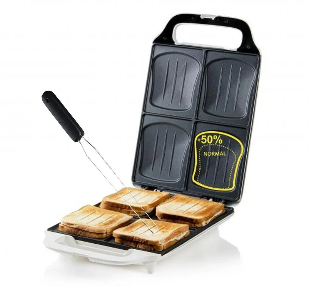 lieferbar-in 3-4 Werktagen bei dirTristar Sandwichmaker, 1300 W, Großer XXL 4er Toaster Panini-Maker Grill Snackmaker mit Gabel weiß