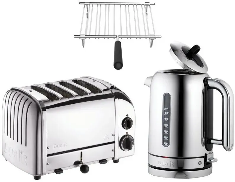 lieferbar-in 2-3 Werktagen bei dirDualit Toaster Dualit Frühstücksset 4er Toaster, 1,7 L Wasserkocher, Brötchenaufsatz