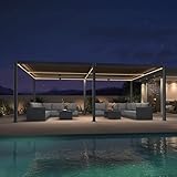 keine Angabe Nur noch 3 auf LagerPURPLE LEAF Pergola 4 x 6 m Lamellendach mit LED-Lichtleiste Terrassenüberdachung Voll-Aluminium Gartenpavillon Kreuzförmiger Querträger Wasserdicht Stabil Winterfest mit duales Ladesystem, Grau