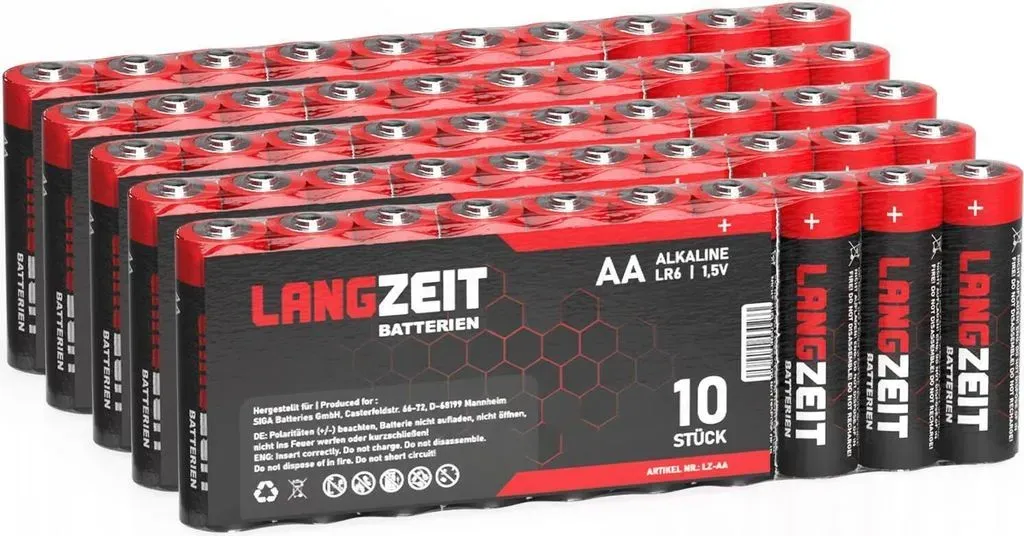 Kategorie: Batterien & Akkus - LANGZEIT Batterien - GTIN:4262471532961 - Technische Daten:Batteriegröße: AA/Mignon/LR06Chemische Zusammensetzung: AlkalineStückzahl: 50Batterie-Kapazität: 2650mAhNennspannung: 1,5VHaltbarkeit: ProduktvorteileLANGZEIT Batterien Langlebige Energie für einen sorgenfreien AlltagIhre kabellose Maus funktioniert nicht mehr, die Kamera versagt im entscheidenden Moment des Urlaubs, und das Kind ist frustriert, weil das RC-Auto nicht mehr fährt? Solche alltäglichen ärgernisse entstehen oft durch minderwertige Batterien.Mit Langzeit Batterien gehört dies der Vergangenheit an. Die Marke steht für qualitativ hochwertige, leistungsstarke, sichere und vor allem langlebige Batterien. Eine Packung LANGZEIT Batterien zu Hause erspart Ihnen den jegliche Frust schlechter Batterien. So können Sie ohne Unterbrechungen weiterarbeiten, unvergessliche Momente festhalten und entspannt zusehen, wie Ihr Kind spielt. Verlassen Sie sich auf unsere Batterien für eine zuverlässige Energieversorgung.Dank der umfangreichen Erfahrung und Erfolge in der Batterie- und Energiespeichertechnologie bieten unsere Batterien 10% mehr Kapazität. Diese Expertise ermöglicht es LANGZEIT, leistungsstärkere Batterien zu entwickeln, die Ihren Anforderungen noch besser gerecht werden. - 7,49 Euro bei Kaufland.de - gefunden von billiger.de Für nur 11,95 Euro erhalten Sie hier 50 Langzeit Premium Mignon LR6 Alkaline Batterien, die eine gute Balance zwischen Preis und Leistung bieten. ![]() ![]() Langzeit Batterien AA 50 Stück Premium Mignon LR6 Alkaline Batterie 1,5V