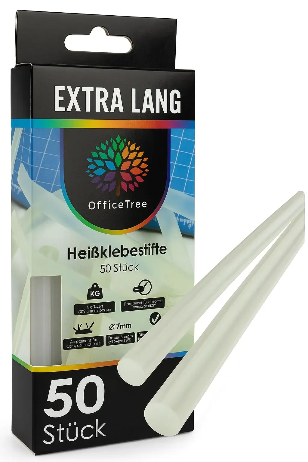 Auf Lager Versand durch AmazonOfficeTree 50 x Heißklebestifte 7mm x 150mm - Extra Stark & Schnelltrocknend - Heißklebesticks 7mm - Heißklebepistole Sticks - Klebestifte für Heißklebepistole Inklusive 2 Fingerschutzkappen