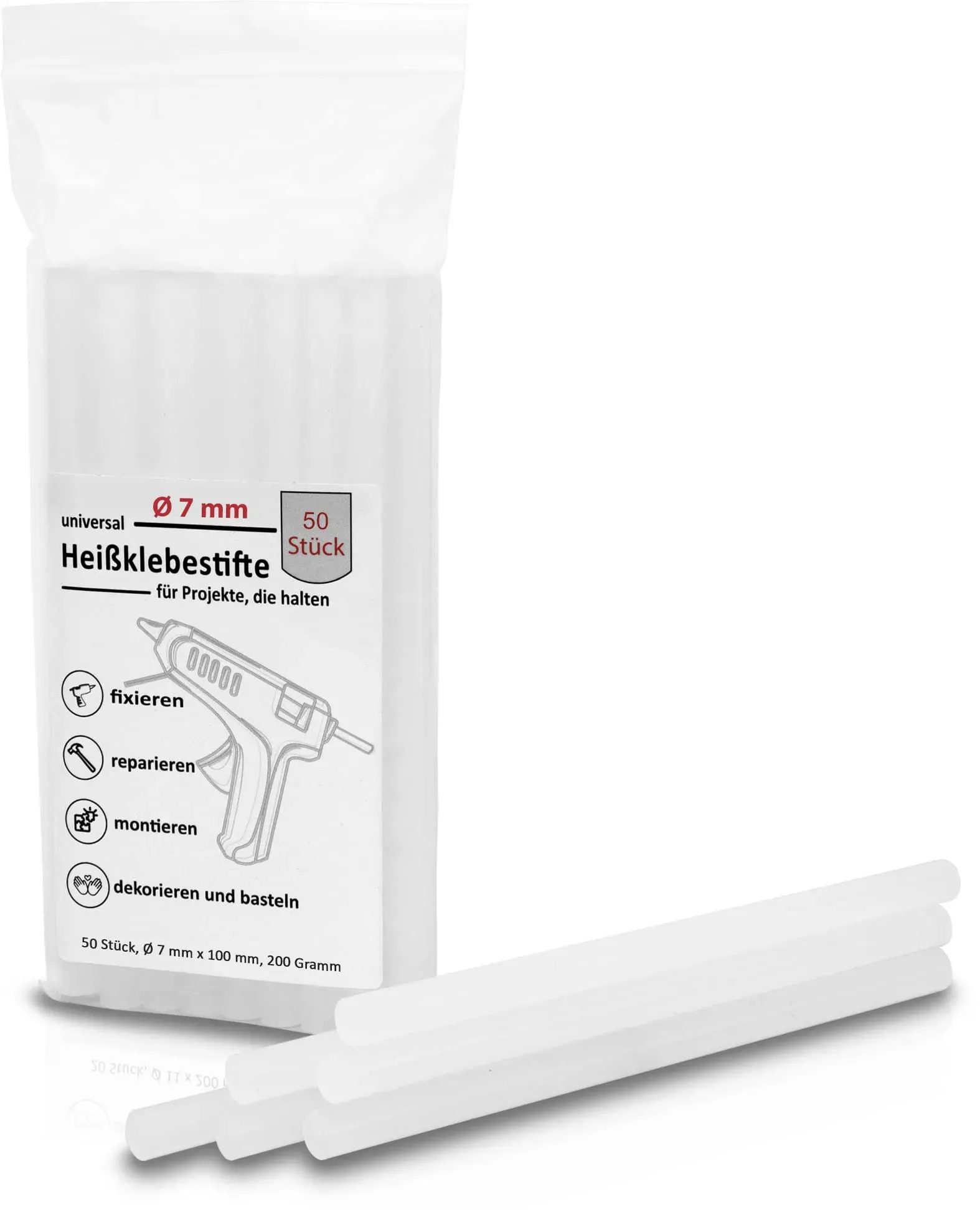 Auf Lager Versand durch AmazonJubaX Heißklebesticks (50 Stück ? Ø 7mm x 100mm) ? Heißklebepistole Sticks für Montage-Klebungen, Basteln, DIY, Heimwerken und Reparaturen ? Heissklebesticks Heiskleber Stifte Heißklebestifte