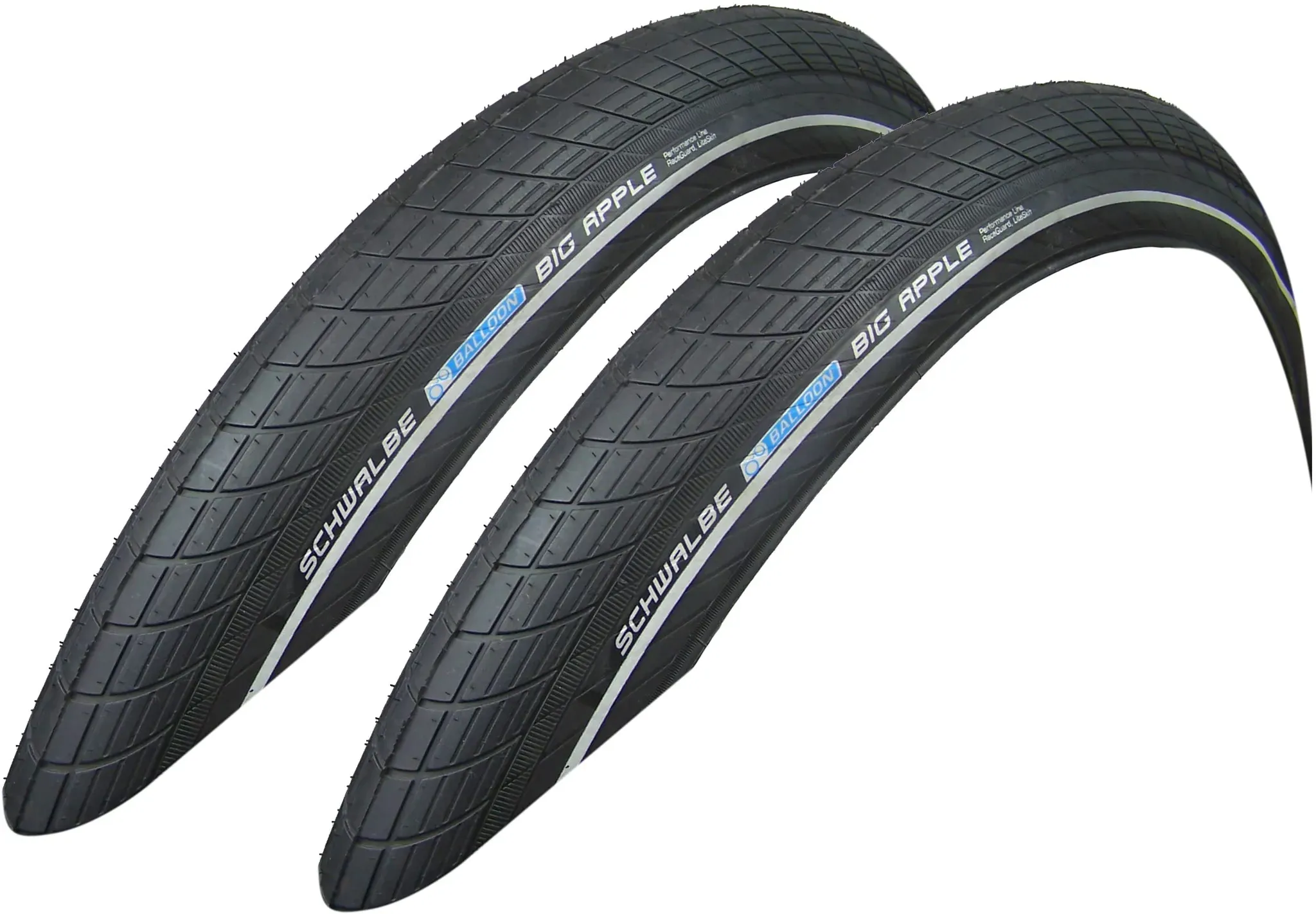 ![]() ![]() Schwalbe Fahrradreifen 26 Zoll Schwalbe Big Apple Reifen 26x2.15 Citybike 55-559 AV Schlauch, (2-tlg), Reflexstreifen,Pannenschutz schwarz