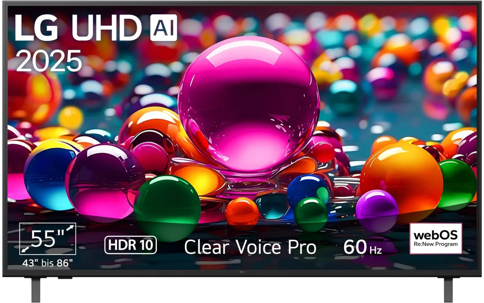keine Angabe (Amazon Prime) Auf Lager Versand durch AmazonLG 55UA75006LA TV 55 Zoll (139 cm) 4K UHD AI TV (?7 Gen8 4K AI Prozessor, webOS 25, 60Hz) [Modelljahr 2025]