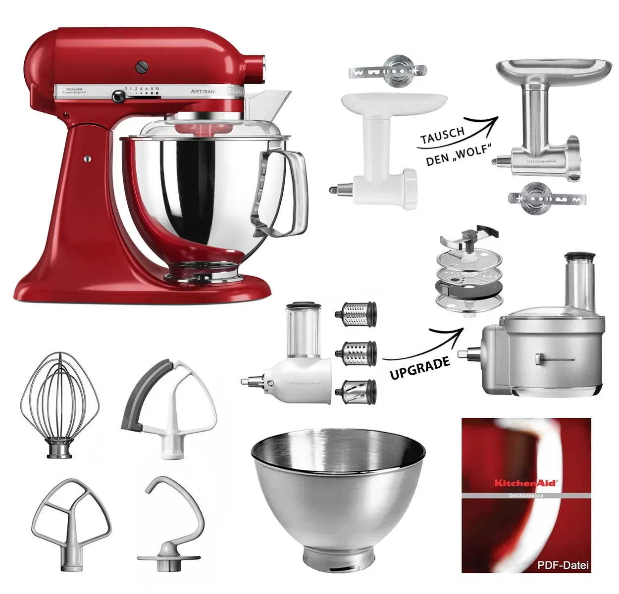 Sofort verfügbar, Lieferzeit: 2-3 WerktageKitchenAid Küchenmaschine 5KSM175PS Fleischwolf Gemüse Set Empire Rot