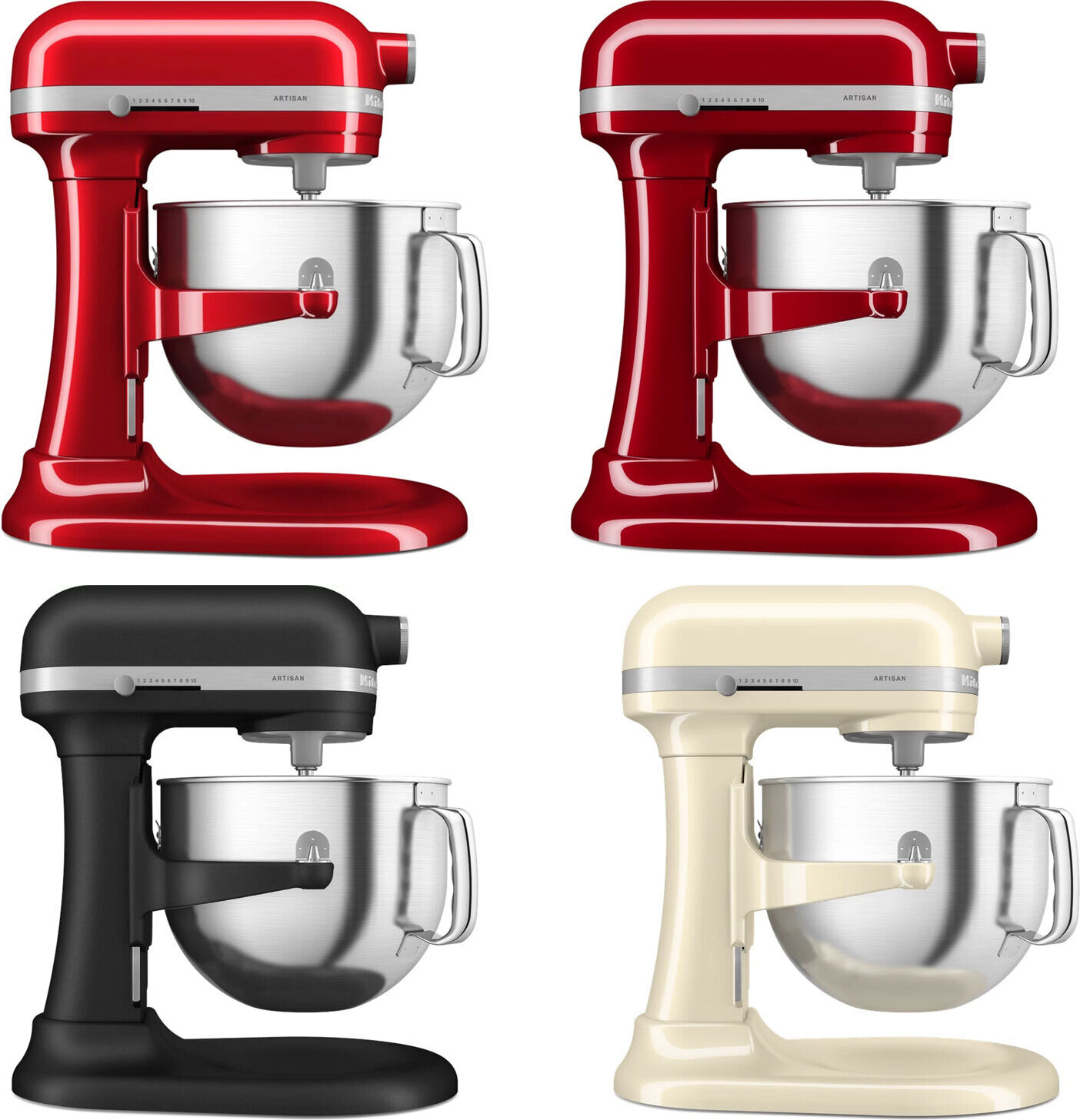 13 Händlerangebote bei billiger.de - Kategorie: Küchenmaschinen - KitchenAid - KitchenAid ARTISAN 6.6 Liter Küchenmaschine mit Schüsselheber Die leistungsstärkste Küchenmaschine von KitchenAid mit Schüsselheber präsentiert sich in einem vollkommen neuen Design und bietet 1,5 Mal mehr Leistung als je zuvor. Sie kann mehr als je zuvor, knetet 3,9 kg Brotteig und meistert auch schwierige Aufgaben mühelos. Das Schüsselheber-Design bietet eine 3-Punkt-Verriegelung für maximale Stabilität und leistungsstarkes Vermengen. überhitzungsschutz: Die Küchenmaschine schützt sich selbst und schaltet sich bei überhitzung ab. Ganzmetallgehäuse, Metallgetriebe und Wärmeschutz sorgen für zuverlässige Ergebnisse und Langlebigkeit. Einfach zu reinigen und zu bedienen: Neues Design mit Kabelaufwicklung, zweifarbiger abnehmbarer Abdeckung der Zubehörnabe und gestreiftem Trimmband mit Prägung sowie Nabenrändelschraube, Auswurf und Geschwindigkeitsregler aus Spritzgussmetall. Schüssel mit einer Kapazität von 6,6 l aus gebürstetem Edelstahl mit ergonomischem Griff, wird leicht mit kleinen und großen Mengen fertig. 11 verschiedene Geschwindigkeitsstufen (von niedrigen Geschwindigkeiten zum Unterheben bis hin zu hohen Geschwindigkeiten zum Schlagen) einschließlich einer neuen Geschwindigkeit zum Unterheben mit halber Rührgeschwindigkeit. Für Präzision, Leistung und Kontrolle von schnell bis langsam und bei allem dazwischen. Soft Start: Eine langsame Beschleunigung auf die gewünschte Geschwindigkeit ... ![]() ![]() KitchenAid Artisan Bowl-Lift 5KSM70SHXEBK Gusseisen-Schwarz
