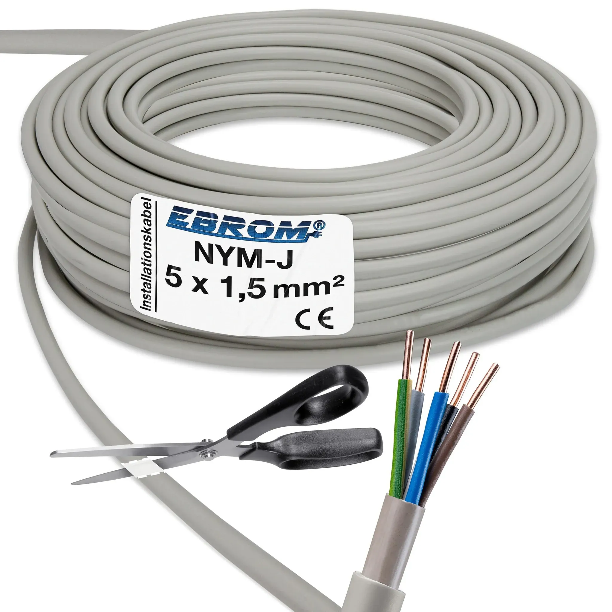 Zustand: Neu - 2,89 € / meter - Elektrische Leitungen - Voxura - 4068922006131 H07RN-F_5x1,5_10 - EAN: 4068922006131 - Geeignet für den Anschluss von Wärmegeräten, gewerblichen Werkzeugen, beweglichen Geräten und Maschinen, bei mittleren mechanischen Beanspruchungen in trockenen und feuchten Räumen, im Freien und in explosionsgefährdeten Bereichen, ebenso in gewerblichen und landwirtschaftlichen Betrieben und Baustellen. Die Leitungen dürfen in provisorischen Bauten oder Baustellen sowie an Förderanlagen und Maschinen fest verlegt werden. Leiter nach harmonisierter Norm (H) für Spannung 450/750 V (07), mit Isolierung aus EPR-Kautschuk (R) und Ummantelung aus Chloropren-Kautschuk (N), mit flexiblen mehradrigen Kupferleitern (F). Anzahl Adern: 5 | Farbe Adern: Grün-Gelb, Blau, Braun, Schwarz. Grau | Leiter: Kupfer Klasse 5 feindrähtig Brandverhaltensklasse: Eca - Flammwidrig nach EN 60332-1-2 | Ölbeständig | Min. Umgebungstemperatur bei mobiler Installation: -25° C | Min. Umgebungstemperatur bei fester Installation: -40° C | Max. Betriebstemperatur des Leiters: +60° C - Verkäufer: Voltking-de im amazon.de Marketplace Eine Mantelleitung NYM-J 5x1,5 mm² in einer gängigen Länge von 25 Metern, geeignet für mittelgroße Projekte. ![]() ![]() EBROM NYM-J 5x1,5 mm2 - Mantelleitung - Installationskabel - Feuchtraumkabel - grau - Auswahl in 1 Meter Schritten - Meterware auf den Meter genau - Ihre Auswahl: NYM-J 5x1,5 mm2, 25 Meter