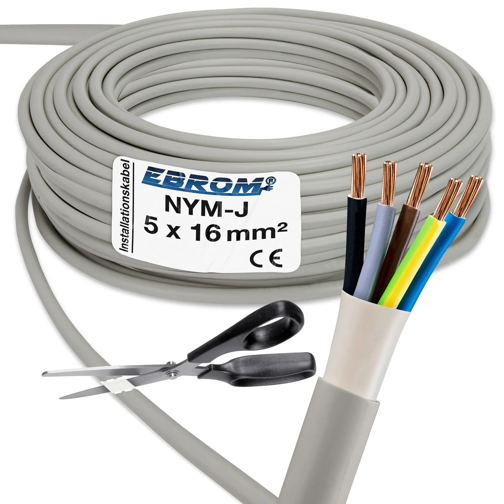 Zustand: Neu - 18,95 € / Meter - Elektrische Leitungen - CROWNSTORES Prysmian, XBK, Waskönig+Walter - NYM5X16 5x16 - - Hochwertige NYM-J 5x16mm² Mantelleitung - 5-adriges Elektrokabel aus massivem Kupfer (Volldraht), ideal für feste Verlegung in trockenen, feuchten und nassen Räumen, sowie im Mauerwerk und Beton (nicht für Erschütterungen geeignet). VDE-geprüft & Made in Germany - Erfüllt höchste Sicherheits- und Qualitätsstandards nach DIN VDE 0293, flammwidrig nach EN 60332-1-2, langlebig und zuverlässig für den professionellen Einsatz. Kabel sind von Deutschen Hersteller XBK, Prysmian oder Waskönig+Walter. Je nach Lagerverfügbarkeit. Vielseitig einsetzbar - Perfekt geeignet als Starkstromkabel, Drehstromleitung oder für den Anschluss von Wallboxen, Verteilungen, Maschinen und weiteren Elektroinstallationen. Robuste PVC-Ummantelung - Grauer Kabelmantel aus Polyvinylchlorid, Schutzleiter vorhanden, Außendurchmesser ca. 23,5 mm ± 1 mm, temperaturbeständig von -40 °C bis +70 °C nach Montage. Meterware in Wunschlänge - Flexibel bestellbar von 1 m bis 25 m, zugeschnitten auf Ihr Projekt. Sauber abgelängt, sofort einsatzbereit und in professioneller Handwerkerqualität. Ihre Auswahl aktuell: 2 Meter Stromkabel - Verkäufer: Crown Elektro im amazon.de Marketplace Dieses Angebot ist ideal für den Kauf von 2 Metern NYM-J 5x16mm2 zu einem fairen Preis. ![]() ![]() EBROM NYM-J 5x16 mm2 - Mantelleitung - Installationskabel - Feuchtraumkabel - Hausanschluss - grau - Auswahl in 1 Meter Schritten, auf den Meter genau - Ihre Auswahl: NYM-J 5x16 mm2, Länge: 2 Meter