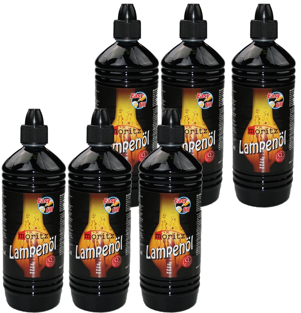 lieferbar-in 2-3 Werktagen bei dirFLAMMBURO Lampenöl für Petroleum-Lampen und Fackeln (6 x 1000 ml), (6-St), Rückstandloses und rußfreies Verbrennen bei richtiger Dochteinstellung