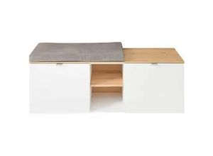 Schuhschränke -regale Wohnen Aufbewahren Ordnen - - BARI Schuhbank in Schilfgrün, Artisan Eiche Optik - Moderne Sitzbank mit Stauraum für Ihren Flur - 128 x 50 x 38 cm (B/H/T), Produktdetails: Anzahl Teile: 1 Stk., Ausstattung Funktionen: Art Auszug: Softclose, mit Selbsteinzug, Anzahl Einlegeböden: 3 Stk., Anzahl Einlegeböden groß: 2 Stk., Anzahl Einlegeböden klein: 1 Stk., Anzahl Fächer: 6 Stk., Anzahl Füße: 6 Stk., Anzahl Holzeinlegeböden: 3 Stk., Anzahl Türen: 2 Stk., Anzahl Griffe: 2 Stk., Art Füße: Gleiter, Art Griffe: Griffleiste, Art Inneneinteilung: Komplettausführung, Art Türen: Drehtüren, Ausstattung: ABS-Schutzkanten, Türen mit Soft-Close-Funktion, Maßangaben: Breite: 128 cm, Tiefe: 43 cm, Höhe: 50 cm, Gewicht: 32 kg, Stärke Korpuswände: 1,6 cm, Stärke Einlegeböden: 1,6 cm, Höhe Füße: 2 cm, Hinweis Maßangaben: Alle Angaben sind ca.-Maße., Material: Material: Holzwerkstoff, MDF, Holzart: Eiche, Herkunftsland Holz: Polen, Material Korpus: Holzwerkstoff, Oberflächenmaterial Front: MDF Foliert, Material Türen: MDF Foliert, Material Schubladenauszug: Metall, Material Griffe: Metall, Material Oberboden: Holzwerkstoff, Material Beschläge: Metall, Material Rückwand: Holzwerkstoff, Material Scharniere: Metall, Material Bodenträger: Metall, Material Füße: Kunststoff, Material Einlegeböden: Holzwerkstoff, Farbe: Farbbezeichnung: weiß, Farbe Korpus: weiß/Artisan Eiche, Farbe Türen: weiß, Farbe Griffe: Silber matt, Farbe Innendekor: Artisan Eiche, Farbe Füße: Schwarz, ... Diese Stufenstehleiter von ZARGES bietet Sicherheit und Stabilität für Arbeiten in der Höhe. Contorion. de