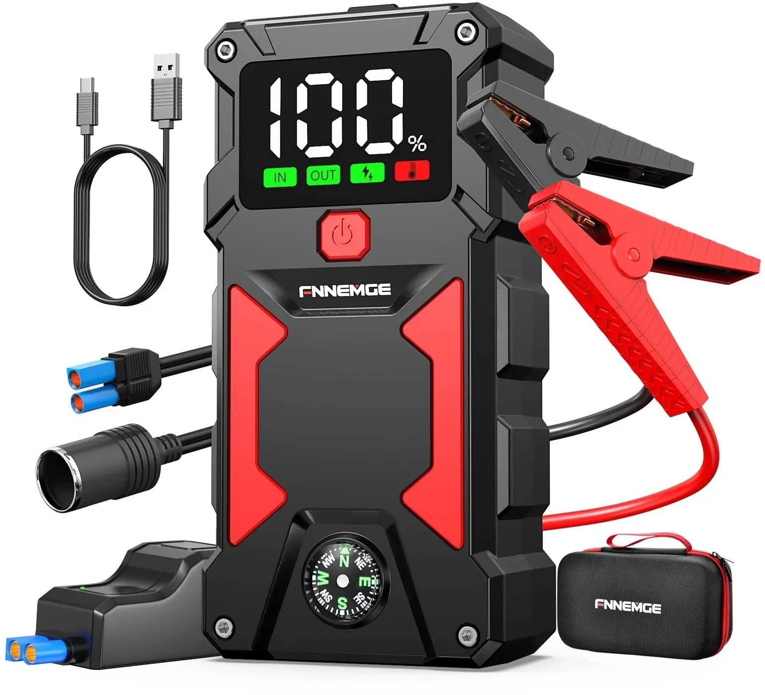 Kategorie: Sonstiges Autozubehör - FNNEMGE - HOCHLEISTUNGSFäHIG FNNEMGE Auto-Starthilfe bietet einen beeindruckenden Spitzenstrom von 6000A, mit dem Sie 12V-Fahrzeuge (Alle Benzin und Bis Zu 10,0L Diesel) selbst bei extremen Temperaturen von -20 F bis 70 F problemlos starten können. Sie ist ideal für Lastwagen, Motorräder, Wasserfahrzeuge, Rasenmäher, Schneemobile und mehr. 10 INTELLIGENTE SCHUTZMECHANISMEN Dieses Starthilfepaket wurde mit höchster Sicherheit im Hinterkopf entwickelt und verfügt über 10 intelligente Schutzmechanismen, die vor überladung, Kurzschlüssen, falscher Polarität, überspannungen und Funkenbildung schützen. Probleme lassen sich schnell identifizieren, indem Sie die Anzeigeleuchten überprüfen und auf die akustischen Signale der intelligenten Starthilfeklemmen achten. VIELSEITIGES LED-LICHT & POWERBANK Unser Auto-Notfallkit enthält ein leistungsstarkes LED-Licht mit drei Modi (Taschenlampe, Stroboskoplicht, SOS-Licht), das sich ideal für dunkle Bedingungen, Notfälle, Camping und Outdoor-Aktivitäten eignet. ,Darüber hinaus fungiert dieses Gerät als tragbare Powerbank mit USB-Ausgängen und Ladeanschluss, mit dem Sie Handys, Tablets und andere Geräte aufladen können. HD LCD-DISPLAY Im Gegensatz zu herkömmlichen tragbaren Starthilfen, die lediglich über Anzeigeleuchten verfügen, bietet die FNNEMGE Auto-Starthilfe einen klar ablesbaren LCD-Bildschirm, der alle relevanten Informationen anzeigt. Der Betriebsstatus ist leicht verständlich und zeigt den ... Die YaberAuto Starthilfe für 89.99 Euro bietet 65W USB C PD Schnellladung und eine hohe Kapazität von 26.800mAh, was sie besonders leistungsstark macht. ![]() ![]() YaberAuto Starthilfe Powerbank, 6000A Auto Starthilfe, 65W USB C PD Jump Starter, 26,800mAh Jump Starter, Starthilfegerät für All Benzin und 12.0L Dieselmotor, Starthilfe mit 600 Lumen Notlicht