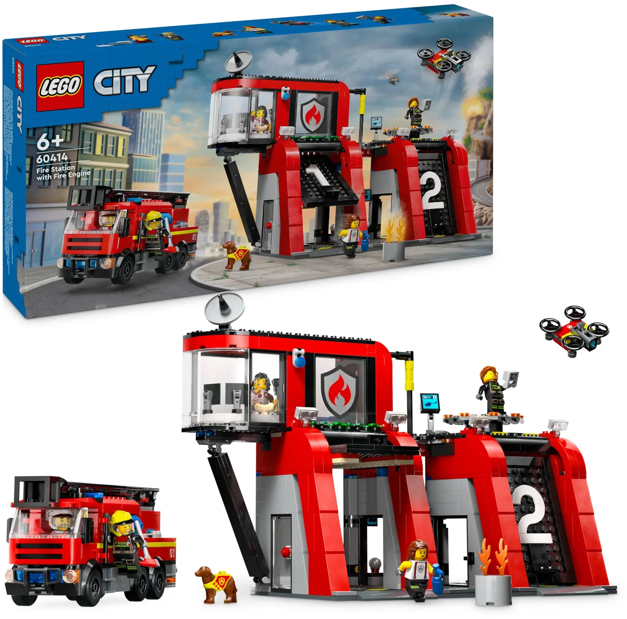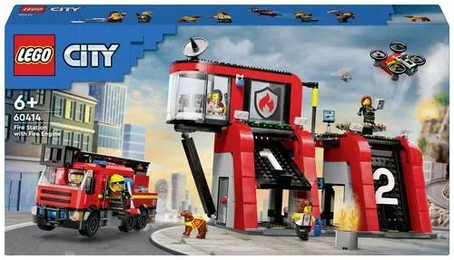 Auf Lager Versand durch AmazonLEGO City Feuerwehrstation mit Drehleiterfahrzeug, Feuerwehr-Spielzeug mit Feuerwache und Feuerwehrauto, Geburtstagsgeschenk für Kinder ab 6 Jahren, Set mit Hund und 5 Minifiguren 60414