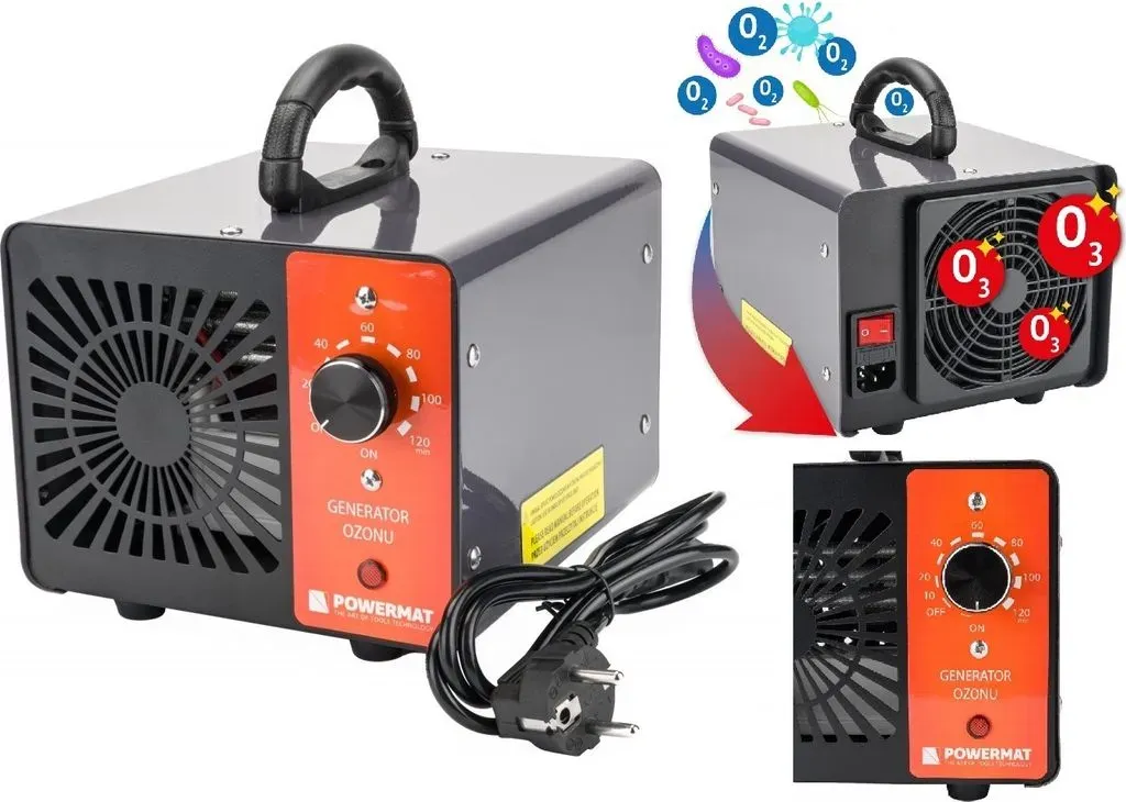 Kategorie: Luftreiniger - Powermat - GTIN:5904067441699 - Spezifikation:Modell: PM-GOZ-60TVersorgungsspannung: 230V / 50HzStromverbrauch: 155 WOzonkonzentrationseffizienz: 60 g/h | 60.000 mg/hBetriebszeitbereich (TIMER): 1-120 MinWarum Ozon?Ozonierung ist eine der wirksamsten Methoden zur Bekämpfung von Bakterien und Viren. Es entfernt sie nicht nur aus der Luft, sondern auch von allen Arten von Oberflächen, auf denen sie sich ablagern könnten. Es eignet sich daher hervorragend zur präzisen Sterilisation von Räumen.Dank der oben erwähnten Fähigkeit, alle Bakterien und Viren, die sie verursachen, zu entfernen, kann die Ozonung unangenehme Gerüche beseitigen. Damit eignet sich das Gerät beispielsweise ideal zur Auffrischung von Autoinnenräumen. Eine Sitzung reicht aus, damit das Auto den unangenehmen Geruch von Alter und Schmutz verliert.Bekämpft die tiefsten Gerüche wie:ZigarettenrauchVerbrennungmuffiger GeruchGeruch nach Schimmelunangenehme TiergerücheGerätebedienungDer Ozongenerator ist sehr einfach zu bedienen, nur wenige Schritte:Der Ozonator sollte an einem stabilen Ort aufgestellt werden und der Auslass des Geräts sollte auf die Mitte der Ozonierungsanlage gerichtet seinOzonierungsstelle dicht verschließen ACHTUNG! Bedenken Sie, dass Ozon für Mensch und Tier gefährlich ist! Halten Sie sich niemals in der Nähe eines funktionierenden Ozongenerators auf!Schalten Sie das Gerät ein (stellen Sie die entsprechende Zeit ein, angepasst an den Innenraum und die Leistung des ... Dieses Smart Ozongenerator-Modell bietet eine Fernbedienung und ist für größere Flächen bis zu 500m² geeignet, was es zu einer komfortablen und leistungsstarken Option macht. ![]() ![]()