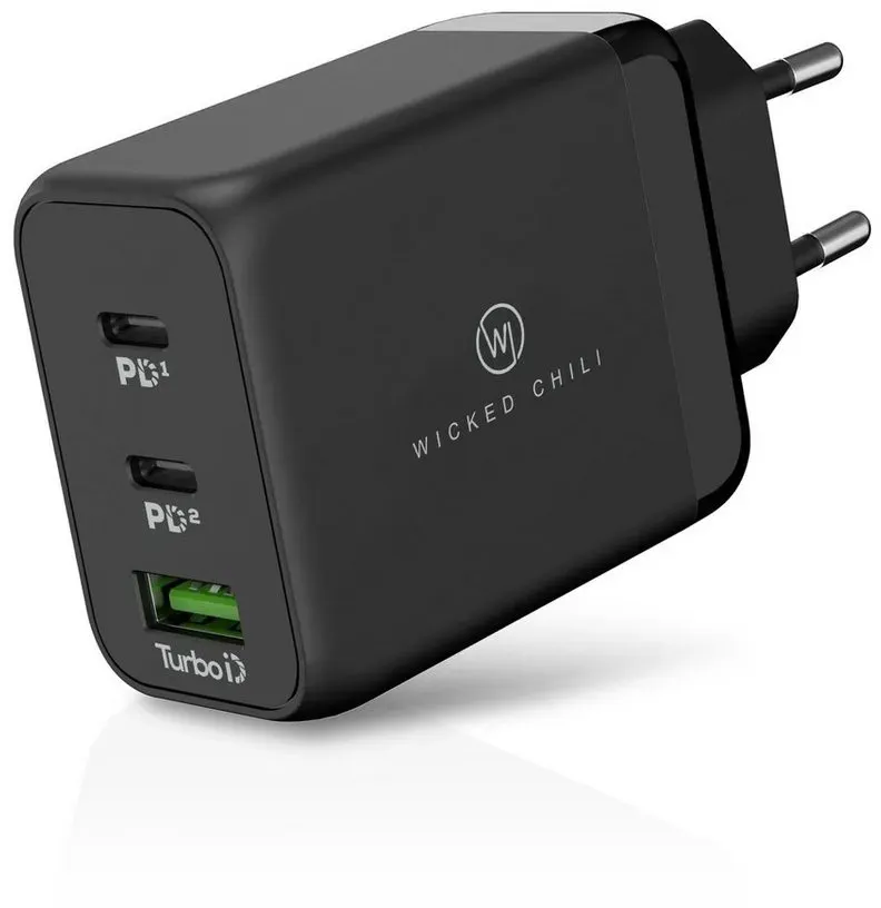 ![]() ![]() Wicked Chili Wicked Chili 3in1 USB Schnellladegerät QC 4.0+ 65W 2x USB-C 1x USB-A, Steckernetzteil (Mit Quick Charge 4.0+ / PD 3.0 PPS - 3in1 Universal GaN USB-C Netzteil) schwarz