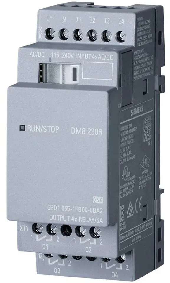 16 Händlerangebote bei billiger.de - Kategorie: Sonstige Elektroinstallationsartikel - Siemens - LOGO! DM8 230R Erweit.-Modul, SV/E/A: 230V/230V/Relais, 2TE, 4 DE/4 DA für LOGO! 8 Die LOGO!-Erweiterungsmodule ermöglichen es, eine LOGO!-Konfiguration sehr individuell auszubauen. Ein LOGO! 8 Grundgerät kann auf 24 digitale Eingänge, 20 digitale Ausgänge, 8 analoge Eingänge und 8 analoge Ausgänge ausgebaut werden. Hierfür stehen zehn verschiedene Erweiterungsmodule zur Verfügung, die bei unterschiedlicher Eingangsspannung die Ergänzung um digitale und analoge Ein- und Ausgänge ermöglichen. - GTIN:4034106029494 Ein solides Angebot im unteren Preissegment, das von einem etablierten Marktplatz stammt. ![]() ![]() Siemens 6ed1055-1fb00-0ba2 - DM8 230R