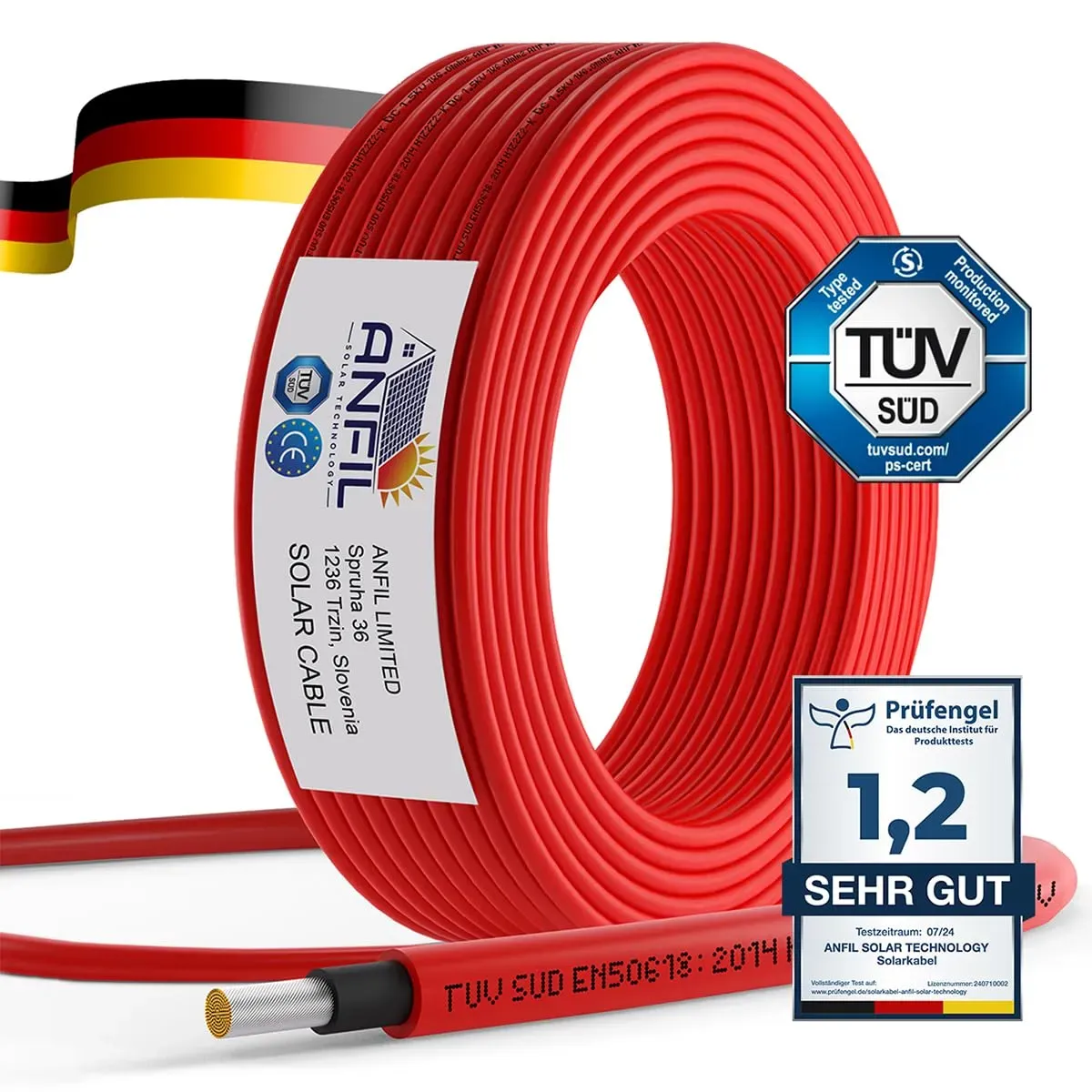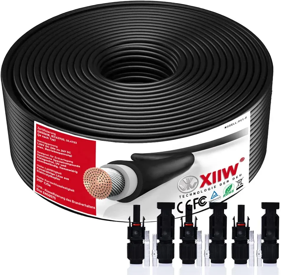 Kategorie: Kabel & Leitungen - anfil - GTIN:0742776046171 - PREMIUM KABEL - Solarkabel Verlängerung ANFIL 6mm2 Solarpanel Photovoltaik Verlängerungskabel Solar PV Kabel ist ein hochwertiges solar produkt, das speziell für die professionelle Installation von Solarmodulen für netzgekoppelte und netzferne Anlagen entwickelt wurde. PERFEKTE KOMPATIBILITäT - Dank den beidseitig vorinstallierten Steckern ist das Kabel Plus- Minus-Kabel perfekt kompatibel, PV-Verteilern und Y-Steckern, verlegefertig und sofort verwendbar. MINIMALER LEISTUNGSVERLUST - Solarverlängerungskabel werden normalerweise in den Größen 4mm2 und 6mm2 verkauft. Das in dieser Auflistung angebotene Solarkabel ist 6mm2 und hat den größten Durchmesser der drei. Die Verwendung eines Solar Kabels mit großem Durchmesser minimiert den Leistungsverlust in Ihrem Solarmodulsystem. ROBUSTES PRODUKT - Erdverlegbar und wasserdicht nach IP67, unsere Solarleitungen sind für Temperaturen von -40 C bis 120 C ausgelegt, was ihre Zuverlässigkeit in unterschiedlichen Umgebungen gewährleistet und haben eine Kurzschlussfestigkeit von 200 C / 5s. ZERTIFIZIERTES PRODUKT - Unsere Solarkabel sind nach EN 50618 und IEC 62930 zertifiziert, mit einer maximalen Spannung von 1.000 VDC und erhöhter UV- und Wasserbeständigkeit für langfristige Zuverlässigkeit. 0% MEHRWERTSTEUER FüR PRIVATHAUSHALTE - Gültig für Kunden, die die gesetzlichen Anforderungen 12 Abs.3 UStG DE / 28 Abs. 62 UStG AT erfüllen. Geschäftskunden unterliegen weiterhin einem ... Ein Set aus zwei 10m Kabeln in Schwarz und Rot, das eine gute Basisausstattung für PV-Anlagen darstellt. ![]() ![]()