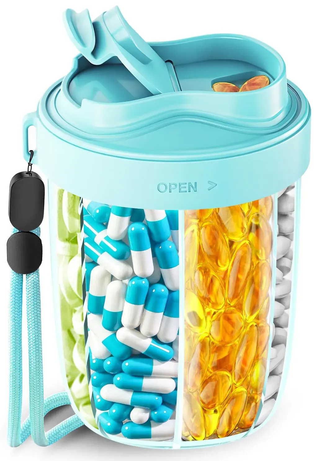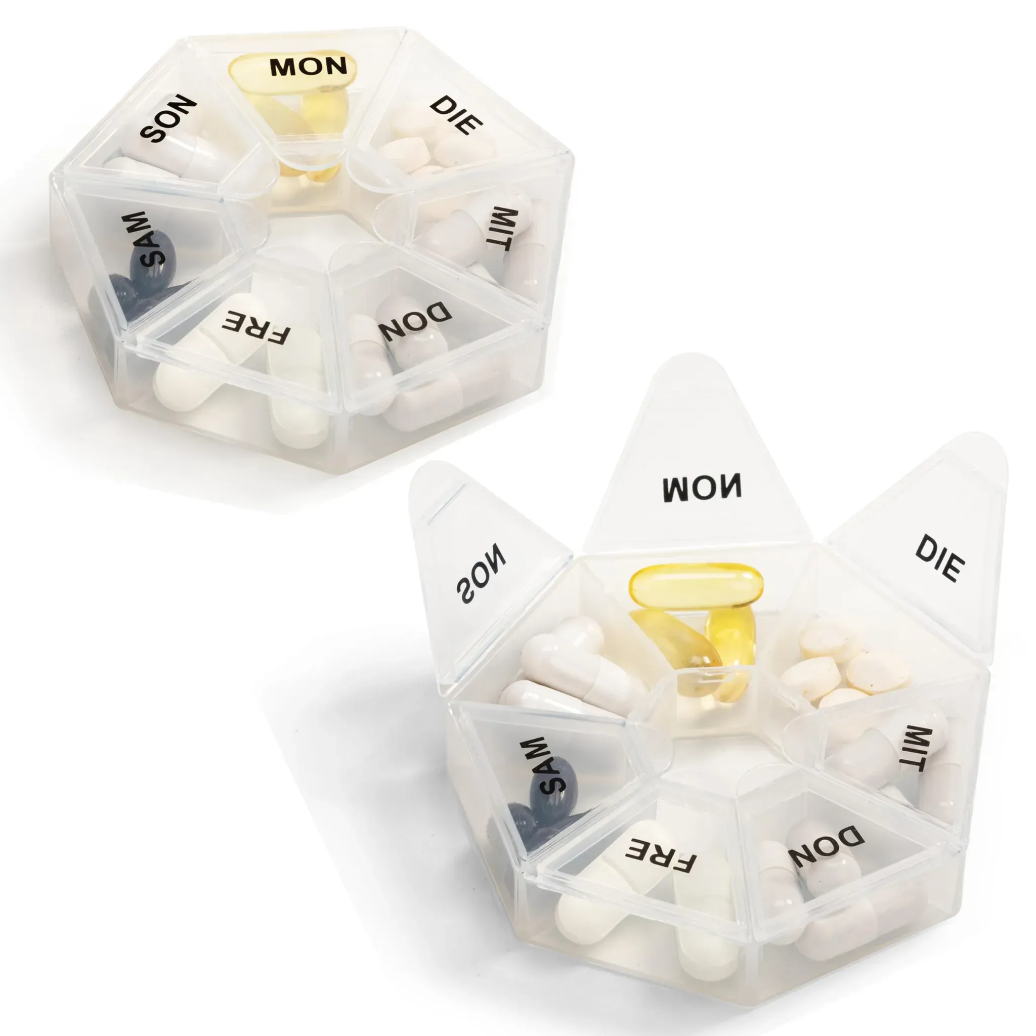Kategorie: Medizinischer Bedarf - AUVON - GTIN:6971292003397 - GROßE KAPAZITäT. Der Tablettenbox von AUVON verfügt über 7 große Fächer, in denen 7 Arten von Nahrungsergänzungsmitteln sortiert werden können, von Kapseln bis hin zu Fischölen. Jedes Fach kann bis zu 18 Fischöle aufnehmen. Dieser Medikamentenbox kann 7 sperrige Pillenflaschen ersetzen, um Platz zu sparen und Zeit zu gewinnen (Bitte beachten Sie, dass dieses Produkt keine Pillen enthält). EINFACHES BEFüLLEN & ENTNEHMEN VON PILLEN. Der Pillendose ist mit einem glatten Gewindedesign, einem 360 flexiblen schwenkbaren öffnungsdeckel und breiten Flaschenöffnungen ausgestattet, was das Befüllen und Entnehmen von Pillen kinderleicht macht. KEINE VERWECHSLUNG MEHR MIT PILLEN. Dieser AUVON Großer Tabletten Organizer minimiert den Abstand zwischen den inneren Trennwänden und dem oberen Deckel, um eine Verwechslung der Pillen zu verhindern, und hält Ihre Medikamente in jedem Fach getrennt und geordnet. UNKOMPLIZIERTE REISEN. Der Pillenbox passt problemlos in Ihre Reisetasche (Gesamtgröße: 12.7 x 8.99 x 8.99 cm) . Diese Supplement Box mit 7 großen Fächern kann Pillen verschiedener Größen anstatt 7 Pillenflaschen aufbewahren. Die Tablettenbox verfügt über einen starken Nylon-Griff mit einer Tragfähigkeit von 6 kg, was die Pillenverwaltung unterwegs erleichtert. WAS SIE EMPFäNGEN. 1 x AUVON große Pillendose, 1 x tragbarer Griff, 20 x Aufkleber, unsere 12-monatige und freundlichen Kundenservice. - 10,99 Euro bei Amazon ... Diese WELLGRO Tablettenbox für 12.95 Euro bietet zwei Fächer pro Tag und ist in verschiedenen Farben erhältlich, was eine individuelle Auswahl ermöglicht. ![]() ![]() WELLGRO runde Tablettenbox für 7 Tage - Pillendose bunt 2 Fächer pro Tag - Klappdeckel mit Druckverschluss - BPA-freier Kunststoff - Farbe wählbar, Farbe:Blau