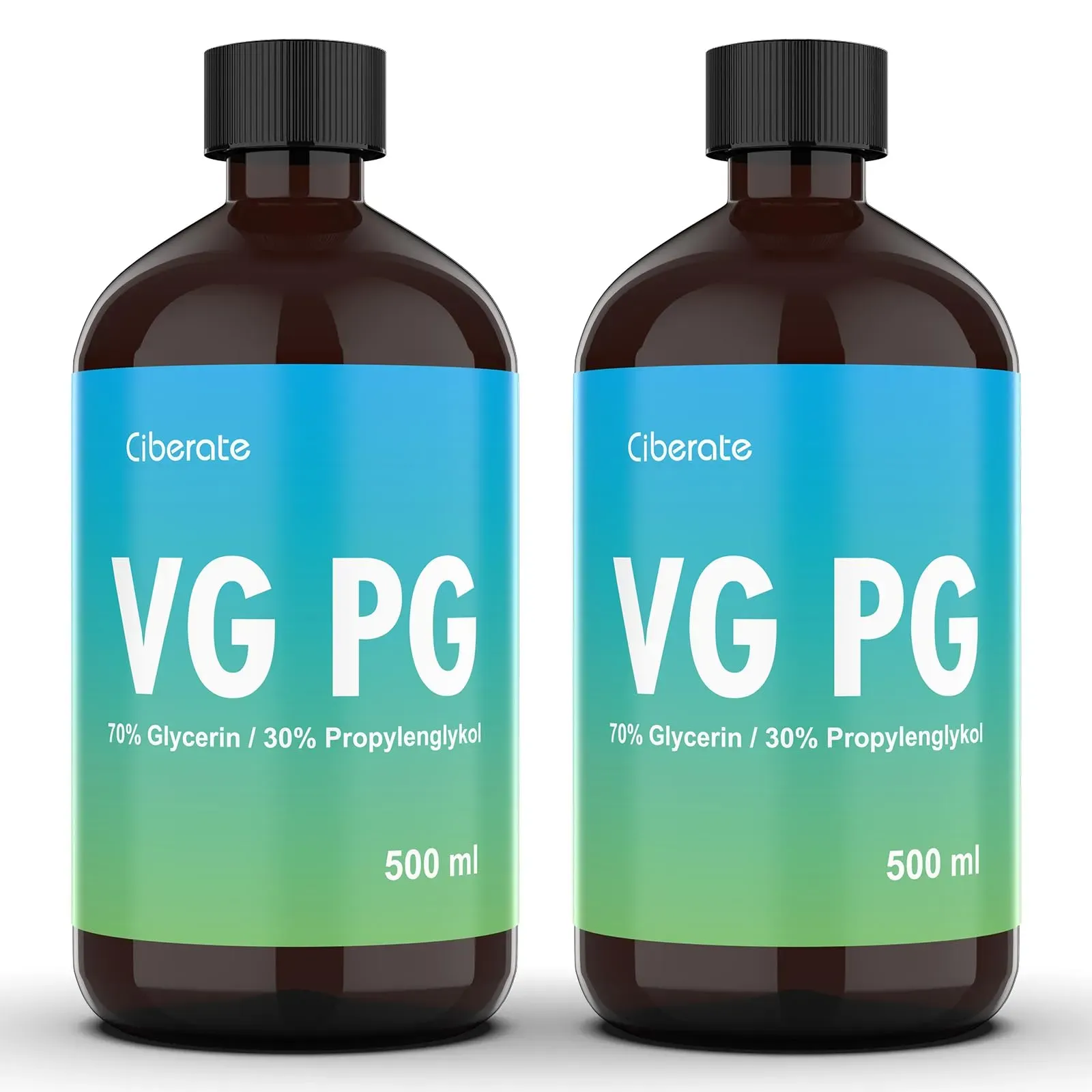 Auf Lager Versand durch AmazonCiberate 2 x 500ml 70% VG Glycerin / 30% PG Propylenglykol - Vegan, Pflanzlich, Pharmazeutische Qualität, Premium Hochreines VG/PG-Gemisch, 0% Zusatzstoffe