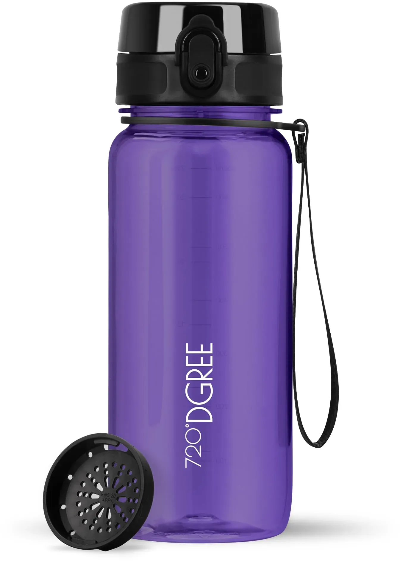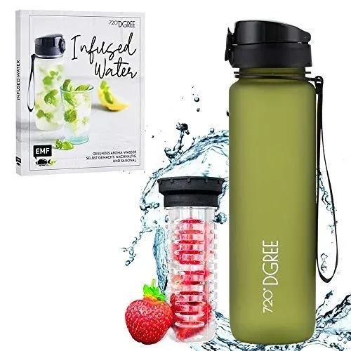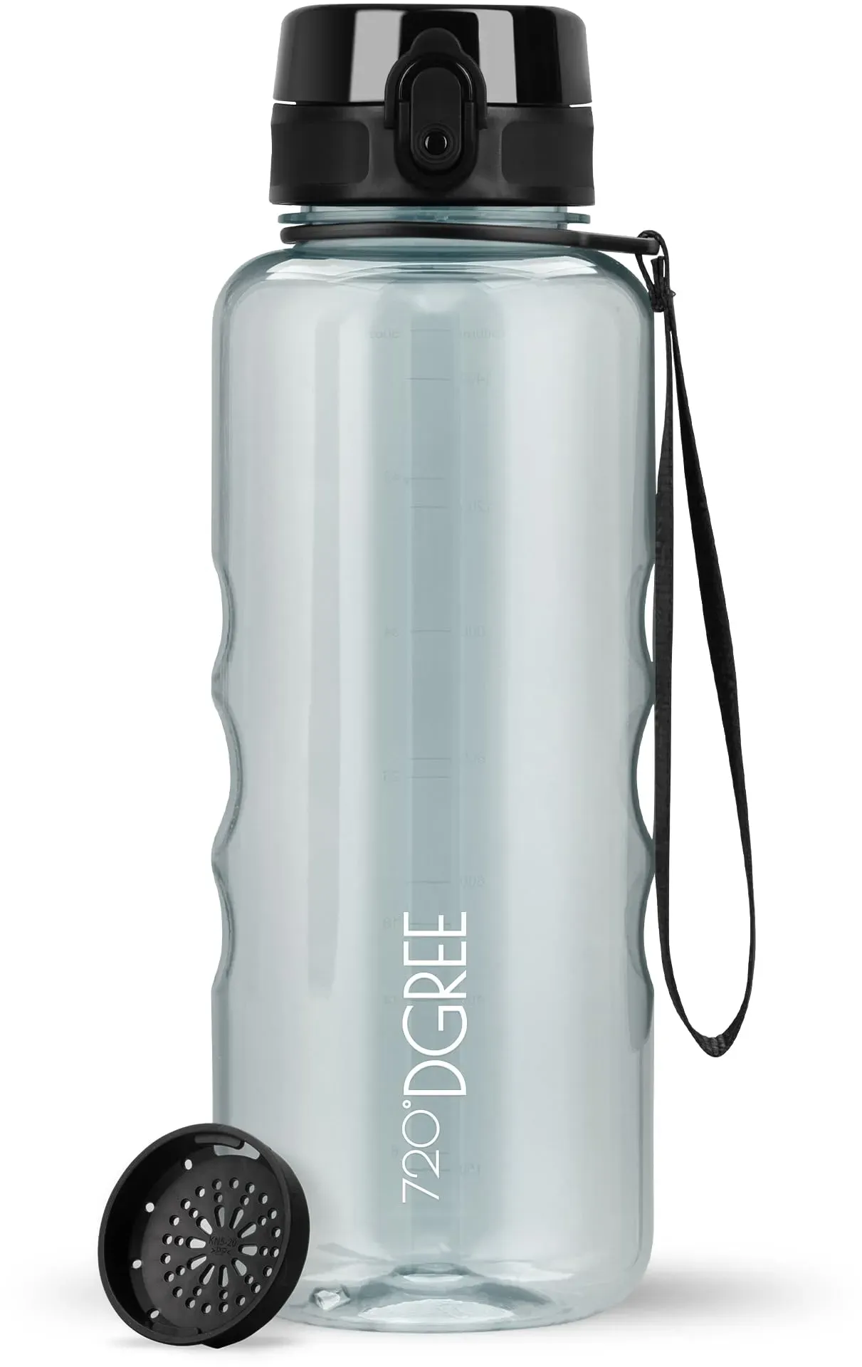 Verfügbarkeit: Auf Lager - Kategorie: Thermoskannen - 720°DGREE - GTIN:4251442612023 - ð§ DEIN ENDLICH-GENUG-AM-TAG-TRINKEN-BUDDY - Egal ob Sport, Outdoor, Job, Uni, Fahrrad oder auch zuhause, die 'uberBottle' mit 650 ml Volumen ist immer Dein perfekter Begleiter bei allen schweißtreibenden und durstig machenden Aktivität oder um am Tag einfach genug zu trinken. Wähle aus 6 Größen die für Dich passende Größe. Durch die integrierte Skala hast du Deinen Flüssigkeits-Vorrat immer im Blick, während die praktische Trageschlaufe den Transport erleichtert. ð AUSLAUFSICHERER SPORT DECKEL - Dieser ist mit einer kleinen Belüftungsöffnung ausgestattet und erlaubt daher einen konstanten Trinkstrahl ohne zu nuckeln oder zu saugen. Zusammen mit der Staubkappe und der praktischen öffnung auf Knopfdruck mit nur einer Hand sorgt dies für ein mühelos hygienisches Trinkerlebnis, ideal für unterwegs. Gleichzeitig sorgen die integrierten Silikondichtungen und der Verschlussbügel dafür, dass dein Getränk immer auslaufsicher in der Flasche bleibt. ð¡ï¸ LEICHT ABER ROBUST - Dank des robusten und stoßfesten Tritan-Kunststoff ist die uberBottle leicht, langlebig und dabei stoßfest, ohne Gefahr von Scherben. Zusammen mit dem geringen Eigengewicht von 158g und einem Volumen von 650ml macht sie das zu Deinem idealen Begleiter in jeder Lebenssituation und unterstützt Deinen aktiven Lebensstil. Maße: Flaschen à 7,8cm, Höhe 19,5cm, Deckel Höhe ... Diese 1-Liter-Sportflasche ist perfekt für Uni, Arbeit und Fitness, da sie leicht, stoßfest und wiederverwendbar ist. ![]() ![]() 720°DGREE 720°DGREE Trinkflasche 1l Sport uberBottle softTouch +Sieb - BPA-Frei - Wasserflasche für Uni, Arbeit, Fitness, Fahrrad, Outdoor, Job - Sportflasche aus Tritan - Leicht, Stoßfest, Wiederverwendbar