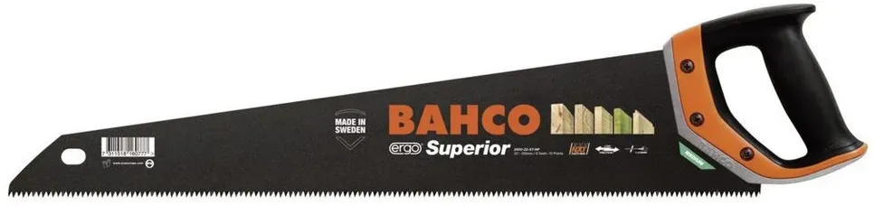Kategorie: Handsägen - BAHCO - GTIN:7311518160777 - Hinweise Warnhinweise , n/a, - 32,32 Euro bei OTTO - gefunden von billiger.de ![]() ![]() Handsäge ERGO Superior Blatt-L.550mm 9/10 ZpZ XT-Zahn.BAHCO