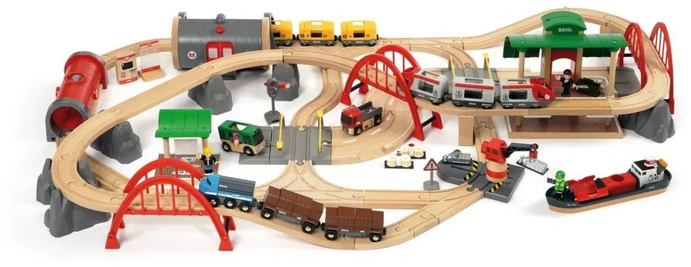 Kategorie: Holzspielzeug - BRIO - GTIN:7312350330526 - So viel Brio Bahn-Welt auf Strassen und Schienen wie noch nie. Ein Aufbau voller Action, einschliesslich Reisezug, Frachtzug, Hafenszenen und Metro-Spass, komplett mit Bahnhöfen, Kränen, Brücken und Figuren. Ein Muss für alle Eisenbahn-Fans. Deine Fantasie bestimmt dein Ziel. - 237,60 Euro bei Galaxus.de - gefunden von billiger.de ![]() ![]()