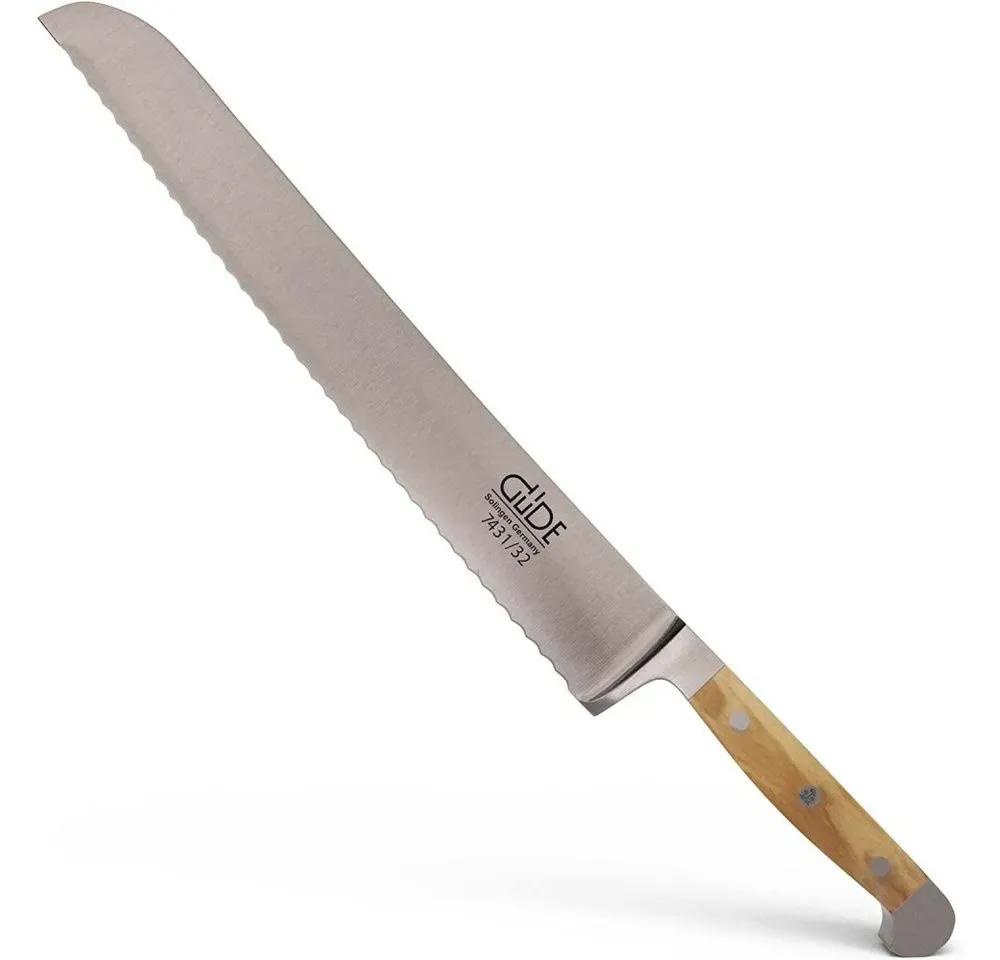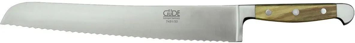 Auf Lager Versand durch AmazonGÜDE Solingen - Brotmesser Linkshänder geschmiedet, 32 cm, Olivenholz, ALPHA OLIVE, Doppelkropf, Handmade Germany