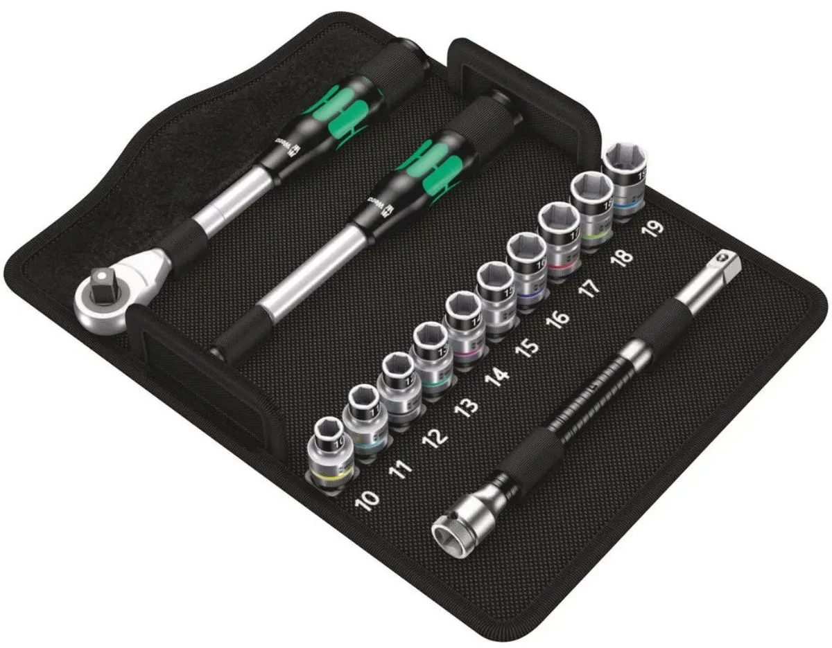18 Händlerangebote bei billiger.de - Kategorie: Schraubenschlüssel - WERA - Kompakte, textile Box mit hoher Robustheit, geringem Gewicht und Volumen Zyklop Hybrid Knarre mit hoher Gesamtlänge (Hebelwirkung) und schlankem Knarrenkopf Feinverzahnung mit 72 Zähnen für einen Rückholwinkel von nur 5 Verlängerung mit Entriegelungsstift Nüsse mit Haltefunktion und Farbkennzeichnung nach Größen - GTIN:4013288182159 ![]() ![]() Wera 8006 SC 1 Zyklop Hybrid-Knarrensatz, 1/2"-Antrieb, metrisch, 13-teilig - 05004090001