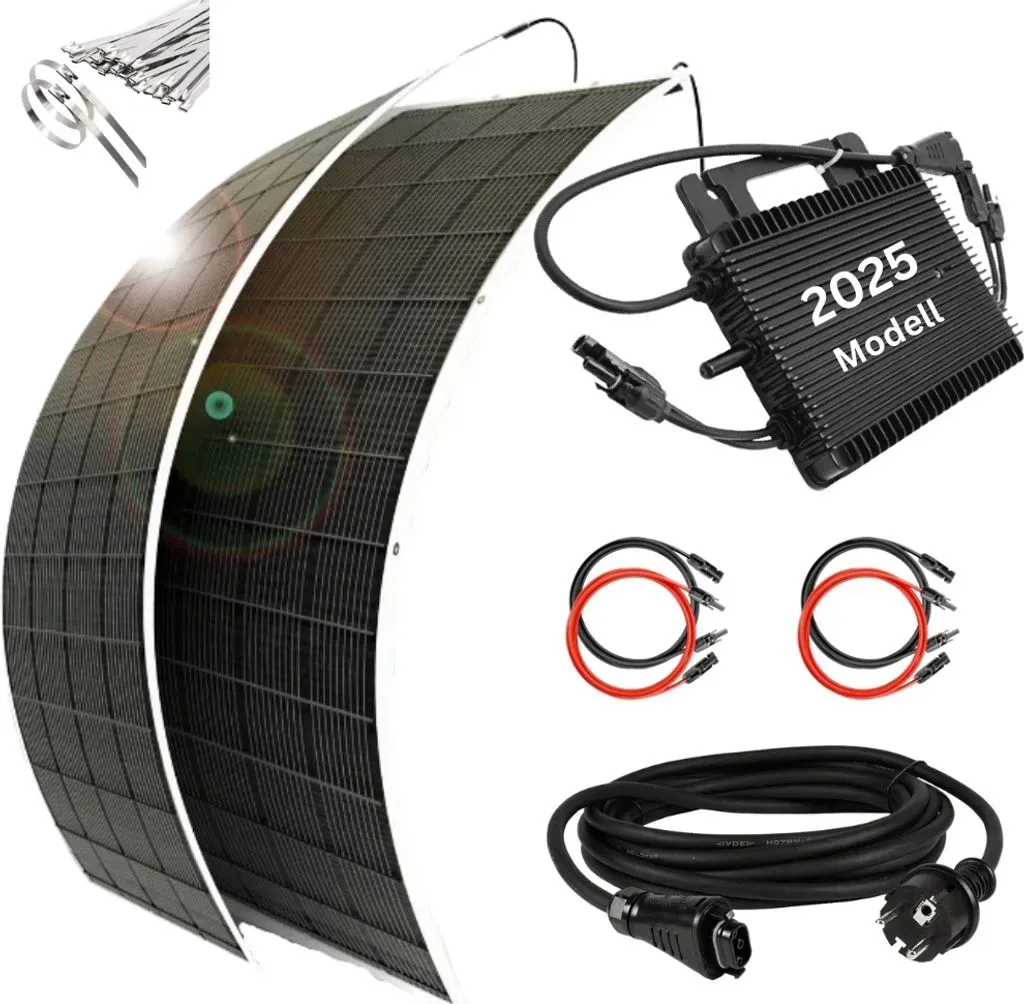 Verfügbarkeit: 2-3 Werktage - Kategorie: Solaranlagen - veska - GTIN:4054748019929 - Das Premium- Balkonkraftwerk 1000W/800W mit Bifazialen Glas/Glas Paneelen von VESKA® wird Steckerfertig geliefert und kann in wenigen Minuten einfach angeschlossen werden. Am Balkon, auf dem Hausdach, der Garage, der Terrasse oder freistehend im Garten, das VESKA® Balkonkraftwerk ist vielseitig einsetzbar und entspricht den Anforderung an VDE-AR-N 4105. Als Balkonkraftwerk wird eine 'kleine' Solaranlage bezeichnet, welche Solarenergie in Strom umwandelt. Der erzeugte Strom wird anschließend über eine normale Steckdose in das Stromnetz der Wohnung eingespeist. Dieser kann dann direkt von Ihren Verbrauchern z.B. Kühlschrank, Fernseher, Router im Haushalt genutzt werden. Mit einer Bifazialen Modulleistung von bis zu 1.050 Watt2, sowie einer hohen Effizienz, bietet es selbst bei schwachen Lichtverhältnissen einen hohen Energieertrag. Durch die Ausgangsleistung von 800 Watt, wird für die Abnahme keine Elektrofachkraft benötigt. Die Solarmodule sind mit TOPCON-Technologie ausgestattet, welche die Effizienz deutlich steigert. Besonders in den Morgen- und Abendstunden bei schwachem und diffusem Licht erzielen die N-Type Module eine höhere Leistung. Die Front aus gehärtetem ARC-Glas mit Antireflexbeschichtung und der robuste schwarze Aluminiumrahmen sorgen für beste Stabilität, auch bei starkem Wind, sowie bei schweren Schneelasten. über das integrierte WLAN Modul mit APP-Funktion sind ... Das MyVoltaics MyUltraleicht Balkonkraftwerk mit 620W monokristallinen Modulen und Hoymiles 800W Wechselrichter ist eine leichte und effiziente Lösung. ![]() ![]() myvoltaics MyUltraleicht Balkonkraftwerk monokristallin 620 W inkl. Hoymiles Wechselrichter 800 W