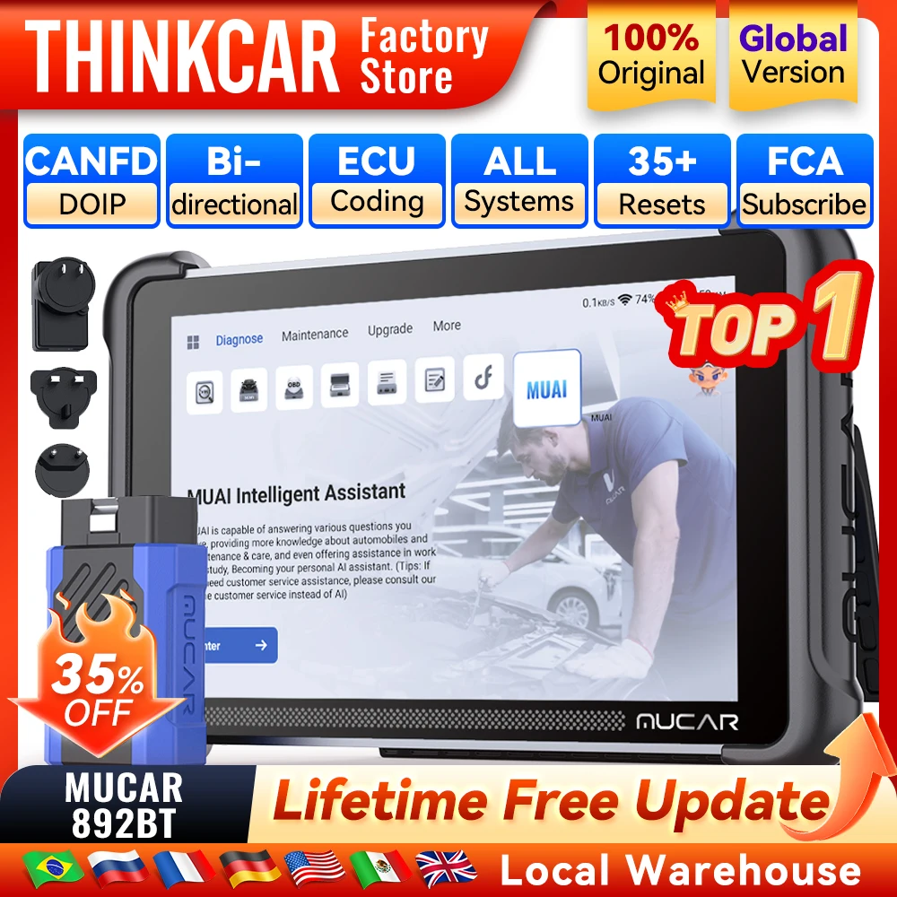 Mucar - EAN: 0810094613204 - MUCAR 892BT AI-unterstütztes OBD2-Diagnosetool CAN FD/DOIP OBD 2-Scanner, Diagnose aller Systeme, 35 Resets, ECU-Codierung, bidirektional, lebenslanges kostenloses Update - bei de.aliexpress.com - aus Yadore Produktdaten Dieses Angebot ist ein Mehrfachpack (3 Stück) und eignet sich hervorragend für Werkstätten oder Nutzer, die mehrere Geräte benötigen. ![]() 3 Stück THINKCAR THINKSCAN 689BT/MUCAR 892BT OBD2-Diagnosetool, unterstützt DOIP CAN FD, lebenslanges kostenloses Update