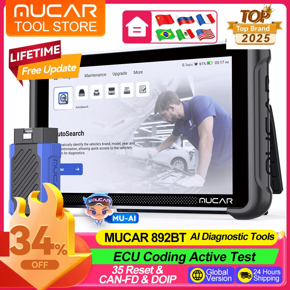 Der angezeigte Preis könnte seit dem letzten Update gestiegen sein - MUCAR 892BT Diagnosetools, kompletter System-OBD2-Scanner mit bidirektionaler ECU-Codierung, 35. Lebenslange Freisprech-Update-Autoscan-Tool zum Zurücksetzen - Zustand: NEW - bei Aliexpress DE - gefunden von Buycentral Dieses Angebot bietet ein AI-unterstütztes Auto-Diagnosescanner-Tool mit vollem System und 35 Reset-Funktionen. ![]() MUCAR 892BT OBD2 AI Auto-Diagnosescanner-Tool, komplettes System 35, Reset-ABS-Funktion, ECU-Codierung, bidirektionale CANFD- und DoIP-Lebensdauer