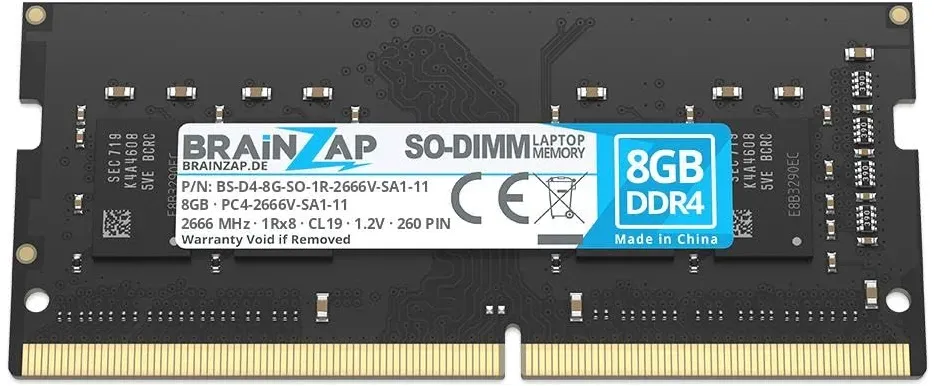 Zustand: Neu - Arbeitsspeicher - Hynix - 8541594395 HMA81GS6CJR8N-VK - EAN: 0814158028058 - Formfaktor: 260PIN SODIMM Gesamtkapazität: 8 GB Spezifikationen: PC4-21300, ungepuffert, nicht-ECC, 1,2 V Datenübertragungsrate: 2666 MHz. International products have separate terms, are sold from abroad and may differ from local products, including fit, age ratings, and language of product, labeling or instructions. - Verkäufer: AH.DIREKT im amazon.de Marketplace Dieses BRAINZAP Modul bietet eine kostengünstige Option, die jedoch als "Unbuffered Non-ECC" gelistet ist, was bei der Suche nach ECC beachtet werden sollte. ![]() ![]() BRAINZAP 8GB DDR4 RAM SO-DIMM PC4-2666V-SA1-11 1Rx8 2666 MHz 1.2V CL19 Notebook Laptop Arbeitsspeicher Unbuffered Non-ECC
