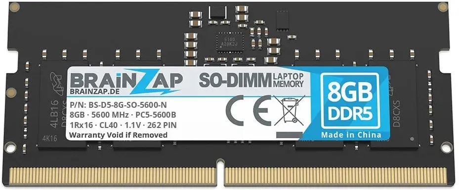 Zustand: Neu - Arbeitsspeicher - Integral - IN5V8GNJWDX - EAN: 5055288450196 - 25 Millionen PC- und Laptop-Arbeitsspeichermodule verkauft Leistungsstarker DDR5-RAM - 50 Prozent schneller als DDR4, Das Hinzufügen von RAM erhöht die Geschwindigkeit Ihres Laptops, sodass Sie Aufgaben schneller erledigen, ein flüssigeres Spielerlebnis genießen und müheloses Multitasking ermöglichen können Erhöhte Effizienz & größere Stabilität - DDR5 verfügt über On-Die-ECC-Technologie und benötigt 20 Prozent weniger Energie als DDR4 Einfache Installation - Das Aufrüsten Ihres Laptops mit RAM ist eine der einfachsten Möglichkeiten, die Geschwindigkeit Ihres Geräts zu erhöhen, Einfach einstecken und loslegen Integral RAM ist vollständig kompatibel mit PC- und Mac-Laptops, einschließlich Windows 11, und sorgt für ein reibungsloses und zuverlässiges Upgrade Für Zuverlässigkeit gebaut - Der Premium-RAM von Integral enthält hochwertige Chips und wird strengen Tests unterzogen, um eine stabile Leistung, hohe Langlebigkeit und einen zuverlässigen Betrieb Ihres Systems zu gewährleisten - bei Amazon.de Dieses BRAINZAP Modul bietet ein sehr gutes Preis-Leistungs-Verhältnis für einen einzelnen 8GB DDR5 5600MHz SO-DIMM Riegel. ![]() ![]() BRAINZAP 8GB DDR5 RAM SO-DIMM PC5-5600B 1Rx16 5600 MHz PC5-44800S 1.1V CL40 Notebook Laptop Arbeitsspeicher