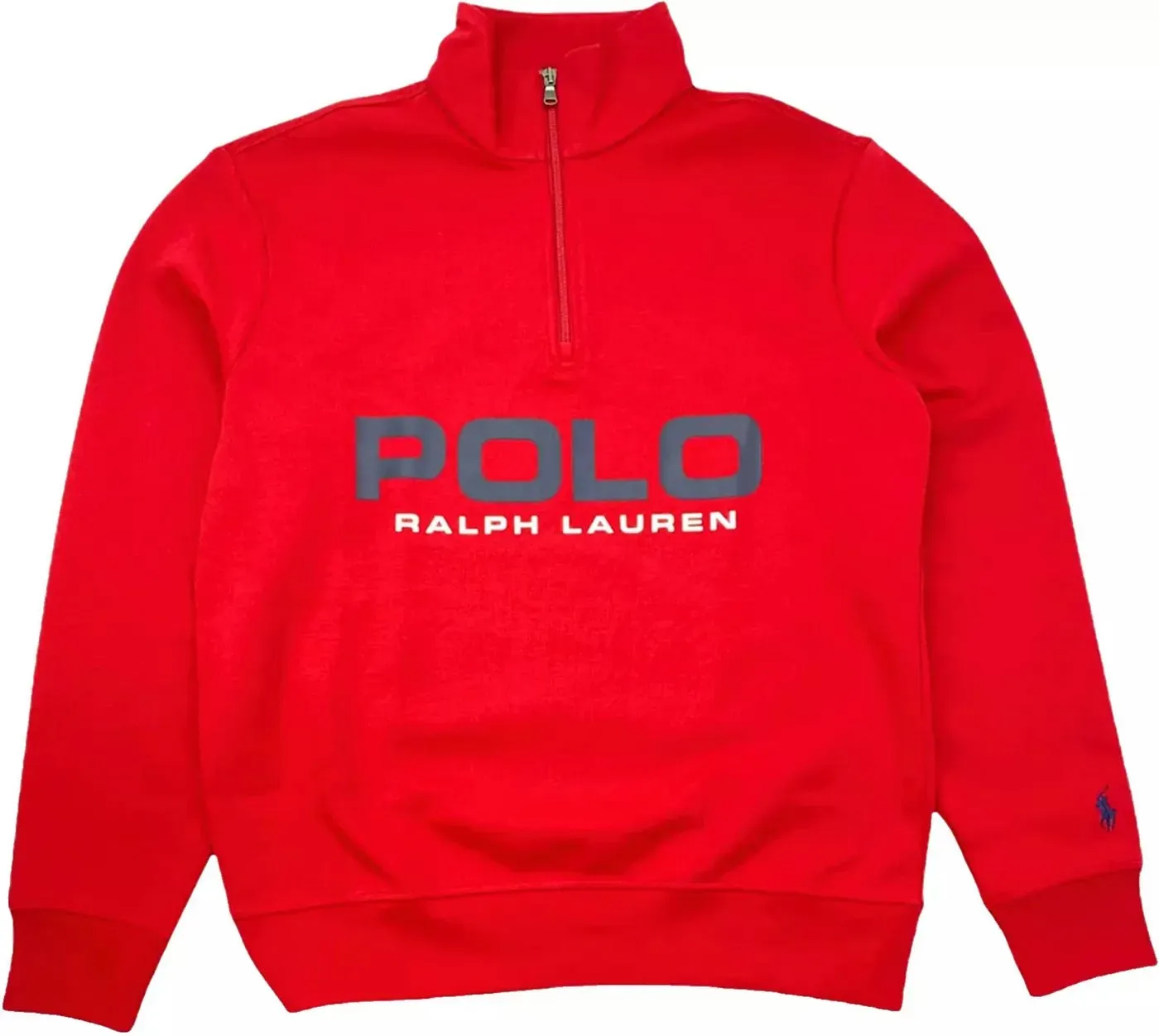 lieferbar-in 3-4 Werktagen bei dirPolo Ralph Lauren Troyer Herren Archiv-Logo Double Knit Sweatshirt Retro Mock Pullover 90er Jahre Archiv-Logo Retro College Oldschool rot XL