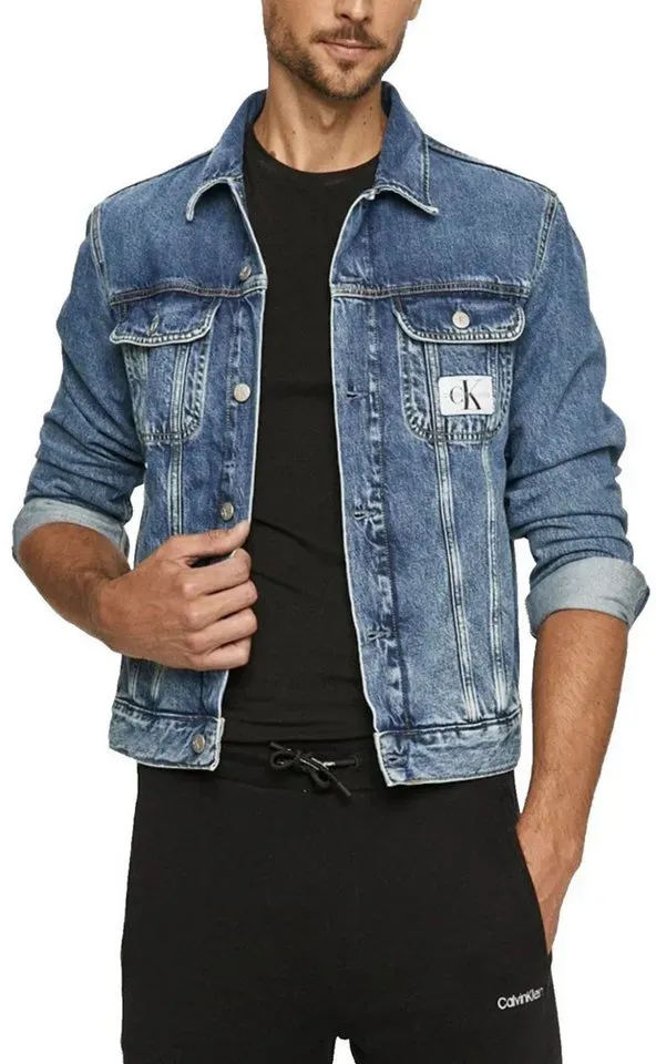 lieferbar-in 6-7 Werktagen bei dirTheo Klein Klein Jeansjacke Calvin CK Jeans 90S Varsity College Jacke Blouson Gewebtes CK Jeans Logo-Patch vorn auf der Brust S