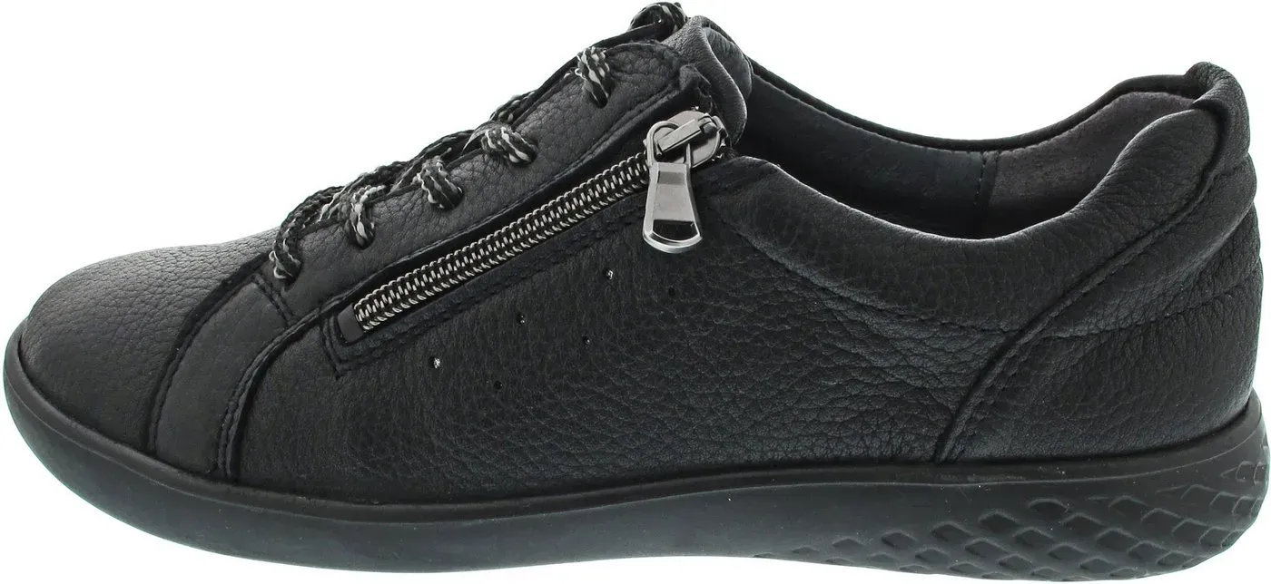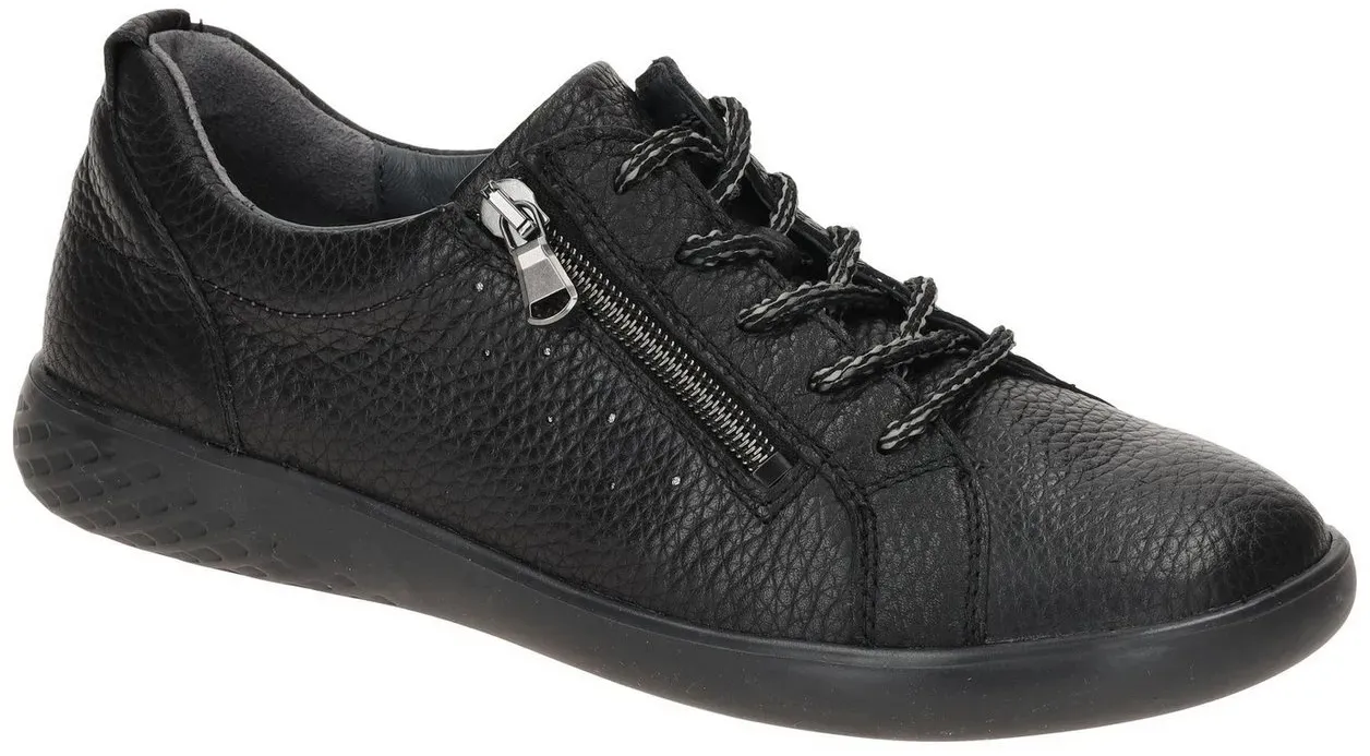 EAN: 4099595805509 - Waldläufer 947001 203 001 947001 203 001 Damen Sneaker Clo SchwarzDer H-Clo Sneaker ist sehr bequem und schlicht. Das Obermaterial aus Glattleder ist besonders anschmiegsam und weich. Das gepolsterte Wechselfußbett kannst du ganz einfach gegen deine eigenen Einlagen austauschen. Mit Hilfe des seitlichen Reißverschlusses gelangst du immer schnell und einfach in den Schuh und dank der langen Schnürung kannst du ihn leicht auf deine Passform einstellen. Dank seiner bequemen H-Weite hast du ausreichend Platz im Schuh. Sein tolles und doch schlichtes Design, sowie die leichte und flexible Laufsohle sorgen für einen sicheren Auftritt mit viel Komfort. Den Sneaker solltest du unbedingt in deinem Schuhschrank haben, wenn du immer komfortabel unterwegs sein willst. Diese modernen Waldläufer Damen Sneaker 947001 203 001 aus Leder in der Farbe Schwarz Silber mit Schnürung und seitlichen Reißverschluss als idealer Begleiter für die Freizeit. Mit Synthetiksohle. Die Schuhweite ist normal. Der H-Clo Halbschuh von Waldläufer in klassischem Schwarz überzeugt mit durchdachtem Komfort für entspanntes und leichtes Gehen. Die integrierte, herausnehmbare PRO-Aktiv-Einlage unterstützt die natürliche Fußbewegung und lässt sich bei Bedarf durch eigene orthopädische Einlagen ersetzen. Dank der bequemen Weite H und der besonders leichten PolyurethanLaufsohle eignet sich der Schuh ideal für den Alltag - ob unterwegs oder bei längeren Gehstrecken. Für zusätzlichen Komfort sorgt ... ![]() ![]() WALDLÄUFER H-Cloe 947001-203-001 (6.5/schwarz silber) | Gr.: 40