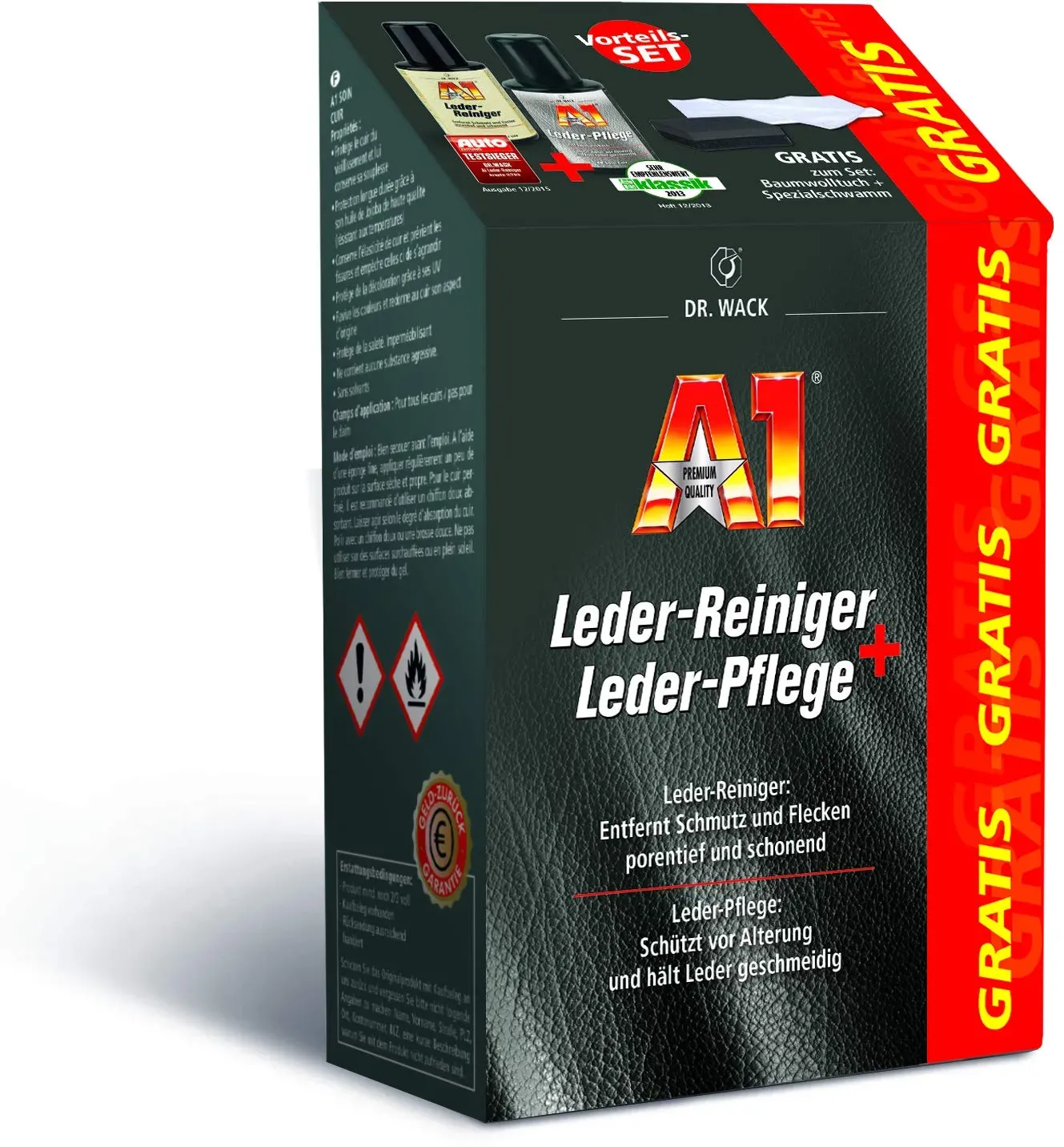 Kategorie: Reinigungsmittel - Dr. Wack - GTIN:4059397002186 - Dr. Wack 3X A1 Lederreiniger Lederpflege Leder Aufbereitung Reinigung 250Ml - 28,17 Euro bei Amazon Marketplace Health & Personal Care - gefunden von billiger.de ![]() ![]() detailmate Lederreinigungs- und Lederpflegeset: Dr. Wack A1 Lederreiniger + Lederpflege 250ml + 2X Applikatorpad + Premium Mikrofasertuch 320GSM