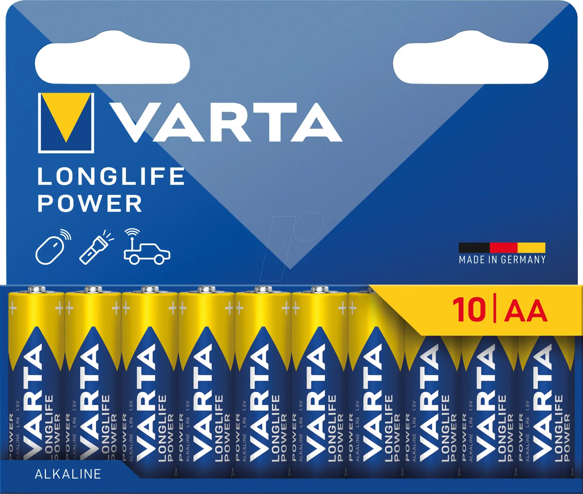 Zustand: Neu - Einwegbatterien - VARTA - 4906121790 - EAN: 4008496067510 - High Performance Qualität 'Made in Germany', in Deutschland produziertes Markenprodukt Die Premium Qualitäts-Batterien bieten immer die passende Energiefreigabe bei gleichzeitig lang anhaltender Leistung 1 Haltbarkeit, auslaufsicher, langlebig und nach internationaler Norm zertifiziert: DIN EN ISO 9001:2008 und DIN EN ISO 1 4001:2005 Ideal für Geräte mit hohem Energiebedarf wie z.B. ferngesteuertes Spielzeug, Controller, Maus, Funkgerät, Taschenlampe, Personenwaage, medizinische Geräte, elektronisches Fiebermessgerät Passend für Fieberthermometer, Gaming Maus, Tastatur, elektronische Roboter, Fernsteuerung, Lampe, Beleuchtung elektronisches Werkzeug - 8 Händler im amazon.de Marketplace Die VARTA AL AA 10X Longlife Power Batterien bieten eine gute Leistung und sind eine beliebte Wahl. ![]() ![]() VARTA AL AA 10X - Alkaline Batterie Longlife Power, AA (Mignon), 10er-Pack