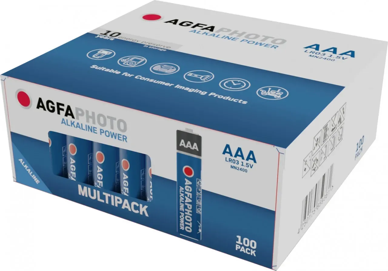 Kategorie: Batterien & Akkus - Ansmann - GTIN:4013674182640 - POWER: Die Batterie eignet sich perfekt für alle Geräte des täglichen Gebrauchs wie Weihnachtsbeleuchtung, Lichterketten, LED Kerzen, Spielzeug, Kamera, Fernbedienungen, Radio, Wecker, Uhr HALTBARKEIT: Besonders langlebig und auslaufsicher. Langanhaltende und präzise Energieabgabe QUALITäT: Die Ultimate Batterien sind erfolgreich auf elektrische, thermische, geometrische und mechanische Anforderungen geprüft. Topleistung auch bei extremen Temperaturen von -20 C bis +60 UMFANGREICH KOMPATIBEL: Alternative Bezeichnungen LR03 / Micro / AAA LIEFERUMFANG: 100x Alkaline Batterien Micro AAA - 24,40 Euro bei Amazon Marketplace CE - gefunden von billiger.de Agfaphoto bietet ein weiteres 100er-Pack Alkaline AAA-Batterien, das eine solide Leistung für den allgemeinen Gebrauch verspricht. ![]() ![]() Agfaphoto Batterie (Micro AAA, Alkali-Mangan, 1,5 V, 100 Stk.)