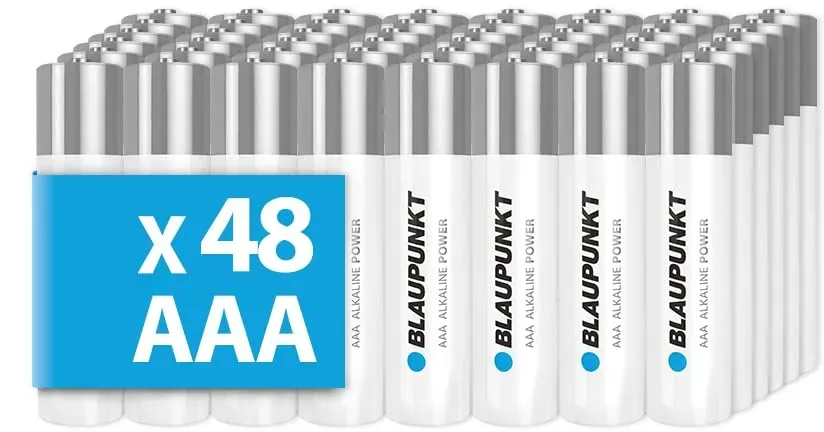 Stromversorgung Batterien Alkalinebatterien Elektronik und elektronische Komponenten - EAN:4250175859330 - 48er-Pack AgfaPhoto AAA / Micro BatterienAgfaPhoto Alkaline Batterien halten besonders lange und eignen sich vor allem für Geräte mit hohem Stromverbrauch. Sie entsprechen dem neuesten Stand der Technik und zeichnen sich unter anderem durch ihre sehr gute Ausdauer sowie ihre maximale Sicherheit und Zuverlässigkeit aus.Verpackung: 48er-PackSpannung: 1,5 VZellentyp: AAA / MicroKompatibel zu: Micro, AAA, 4003, LR 03, MN 2400, X92, AM-4 - gefunden von Kelkoo BLAUPUNKT AAA Alkalibatterien sind eine preiswerte Markenoption, besonders geeignet für Geräte wie Wanduhren und TV-Fernbedienungen. ![]() ![]() BLAUPUNKT AAA Alkalibatterien Packung mit 48, für Wanduhren und TV-Fernbedienungen, LR03BPO/48