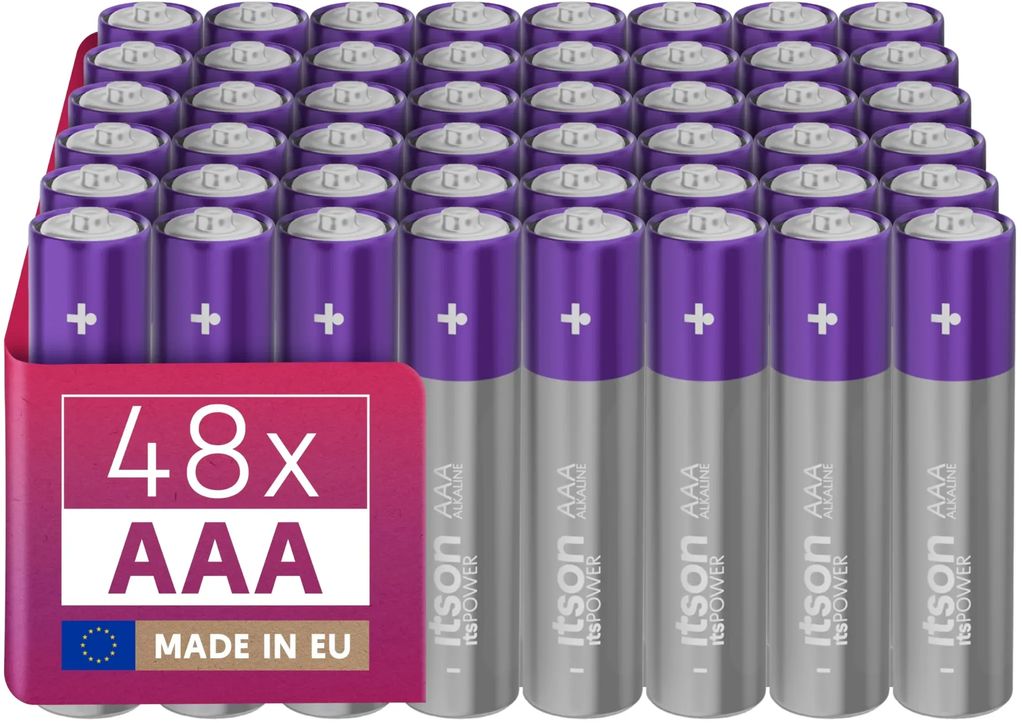 Kategorie: Batterien & Akkus - Lepro - GTIN:4894495039012 - Power für den Alltag: Lepro AAA Alkaline Batterien liefern langanhaltende Energie für all Ihre Geräte - von Fernbedienungen und Spielzeug bis hin zu Smart Home Geräten und Computerzubehör. Mit 1200 mAh haben Sie extra lange Power Langlebig und hohe Effizienz: Die Lebensdauer von Lepro AAA-Batterien ist besser als bei Standard-Alkalibatterien. Sie hat sechs mal mehr Leistung als eine herkömmliche Manganbatterie. Die Power-Lock-Technologie erhöht die Batterieeffizienz um fast 50 % Absolut Auslaufsicher: Schützen Sie Ihre Geräte mit Lepro! Unsere fortschrittliche Dichtungsstruktur verhindert Auslaufen und rt einen sicheren Betrieb, egal wo Sie die Batterien einsetzen Gut für die Umwelt: Lepro Batterien sind frei von schädlichen Stoffen wie Quecksilber und Blei. Setzen Sie auf umweltfreundliche Energie und schonen Sie die Umwelt!Lepro AAA-Batterien können durch jede andere AAA-Batteriemarke oder durch MN2400-, LR03-, LR3-, 24A- oder AM5-Batterien ersetzt werden Sparsam & Leistungsstark: Der 48er Vorratspack Lepro AAA Batterien bietet Ihnen langanhaltende Energie zu einem attraktiven Preis. So haben Sie immer genug Power für Ihre Geräte (Die Verpackungsfarbe kann von Version zu Version leicht variieren, die Parameter sind einheitlich) - 13,98 Euro bei Amazon Marketplace CE - gefunden von billiger.de Panasonic bietet hier ein gutes Preis-Leistungs-Verhältnis für 48 Alkali-Mangan-Batterien, die in praktischen 4er-Folien verpackt sind. Manomano.d e