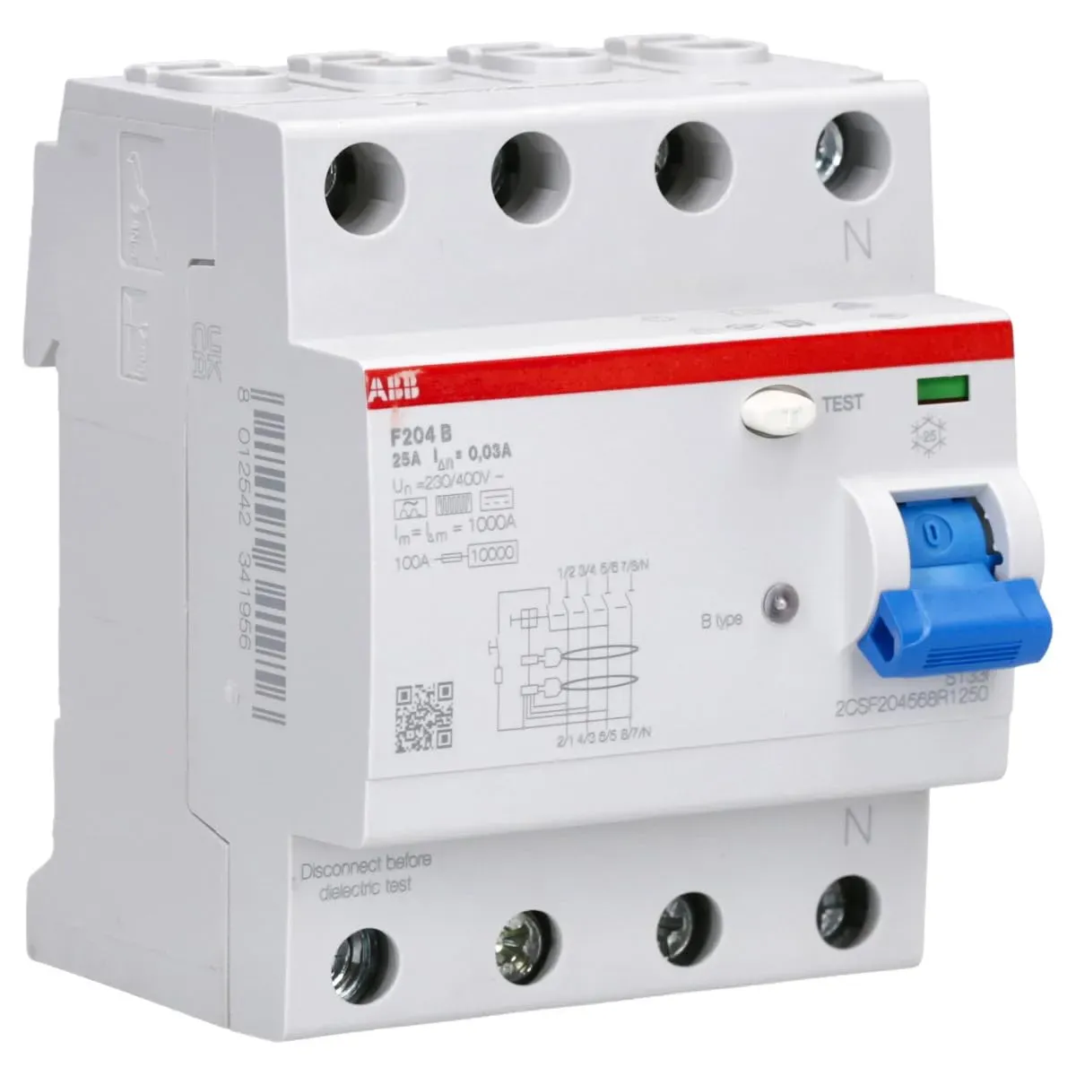 ![]() ![]() ABB allstromsensitiver FI-Schutzschalter F204 B-63/0,03, 63A/0.03, Typ B, 4polig