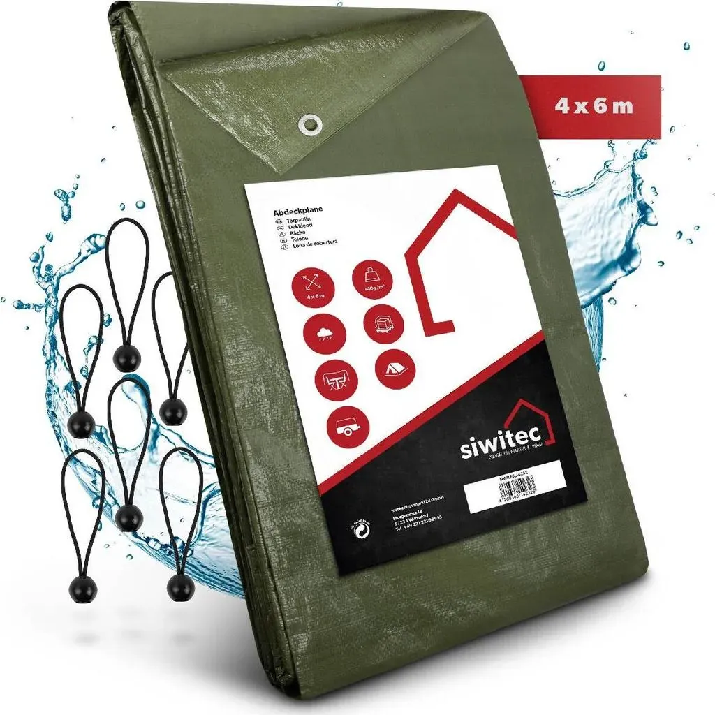 Kategorie: Schutzhüllen für Gartenmöbel - siwitec - GTIN:4260368154777 - Hochwertige siwitec Gewebeplanen inkl. 6 Planenspanner zum Abdecken von Gartenmöbeln, Pools, Booten und BaumaterialienDie siwitec Plane ist ein richtiger Allrounder im Outdoor-Bereich. Egal ob Sie Ihre Gartenmöbel, Ihr Brennholz, Baumaterialien oder den Gartenpool vor Witterung und Schmutz schützen möchten, mit der wasserfesten und UV-beständigen siwitec Abdeckplane ist das alles kein Problem, denn die Plane ist in insgesamt 23 Größen erhältlich. Mit einer Grammatur von 140 g/m2 ist die Gewebeplane sehr robust. In Intervallen von ca. 1 m befinden sich die Metall-ösen zur Befestigung und die Ecken jeder Plane sind nochmal zusätzlich verstärkt. Passend zu der von Ihnen ausgewählten Plane erhalten Sie sechs Planenspanner.Produktdetailsrobuste Plane 140 g/m2Metall-ösen im 1 m Intervallverstärkte Eckeninkl. 6 PlanenspannerwasserfestUV-beständigSchutz vor Witterung und SchmutzFarbe: OlivgrünTechnische DetailsMaterial PlanePolyethylen (PE)Material ösenAluminiumGrammatur140 g/m2Planenspannerinkl. 6 PlanenspannerWasserdichtjaUV-beständigjaFarbeOlivgrünLieferumfangAbdeckplane in gewählter Größe inkl. 6 Planenspanner - 32,90 Euro bei Kaufland.de - gefunden von billiger.de Die ECD Germany Abdeckplane mit 260g/m² bietet für 34.99 Euro eine hohe Reißfestigkeit und Schimmelresistenz. ![]() ![]() ECD Germany Abdeckplane Gewebeplane mit Ösen 4x6m 24m² 260g/m² Blau aus Polyethylen Schimmelresistent Wasserdicht Reißfest Schutzplane Bootsplane Gartenplane Holzplane Plane für Gartenmöbel Pool Auto