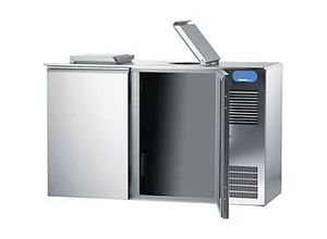 CHROMOnorm - EAN: 4250359205106 - abfallkühler 1 x 240 l, steckerfert g. korpusabdeckung aus edelstahl, zum schutz vor verschmutzung der flügeltüre und des maschinenfachs überstehend. kühlkorpus mit isoliertem boden in einem stück hochdruckgeschäumt, innen und außen aus edelstahl. verdampferfreier nnenraum. steckerfertige umluftkühlung mit unverwüstlich komplett in der rückwand eingeschäumtem verdampfer, automatischer abtauung und tauwasserverdunstung. elektronische regelung mit digitalanzeige, geschützt hinter abschließbarer maschinenfach-tür. kältemaschine für servicezwecke beweglich montiert. einfachste kondensatorreinigung möglich. einwurfklappe in einem stück hochdruckgeschäumt, mit integrierter griffleiste, leicht auswechselbarer dichtung und ist bei 95 arretierbar. runde einwurföffnung mit reinigungsfreundlichem abklopfprofil. flügeltür in einem stück ochdruckgeschäumt, mit integrierter griffleiste und leicht auswechselbarer magnet-dichtung. lieferung erfolgt fertig montiert, ohne abfallbehälter. temperaturbereich +2 / +15 c. anschlusswert 440 w / 230 v / 50 hz. kältemittel r134a. kälteleistung 380 w -15 c vt. energieverbrauch 2,9 kwh/24h. abmessungen unverpackt (lxtxh) 1020 x 870 x 1222 mm. - bei metro.de - aus Yadore Produktdaten ![]() ![]() Chromonorm Abfallkühler - 1 Tür eBay 1x240 L